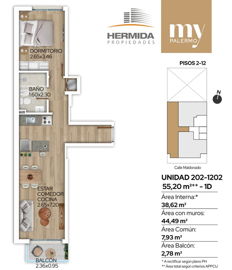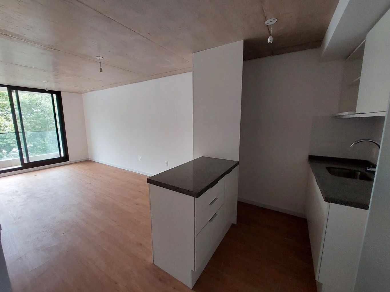 La unidad cuenta con living comedor con salida a terraza, cocina abierta con doble mesada en granito, placares bajo y sobre mesada, baño completo de cómodas dimensiones.