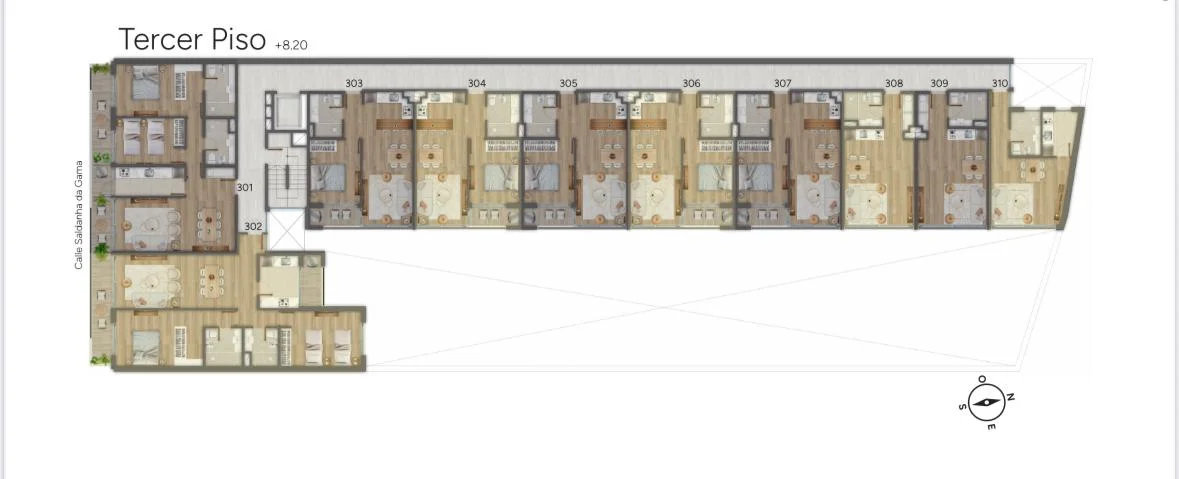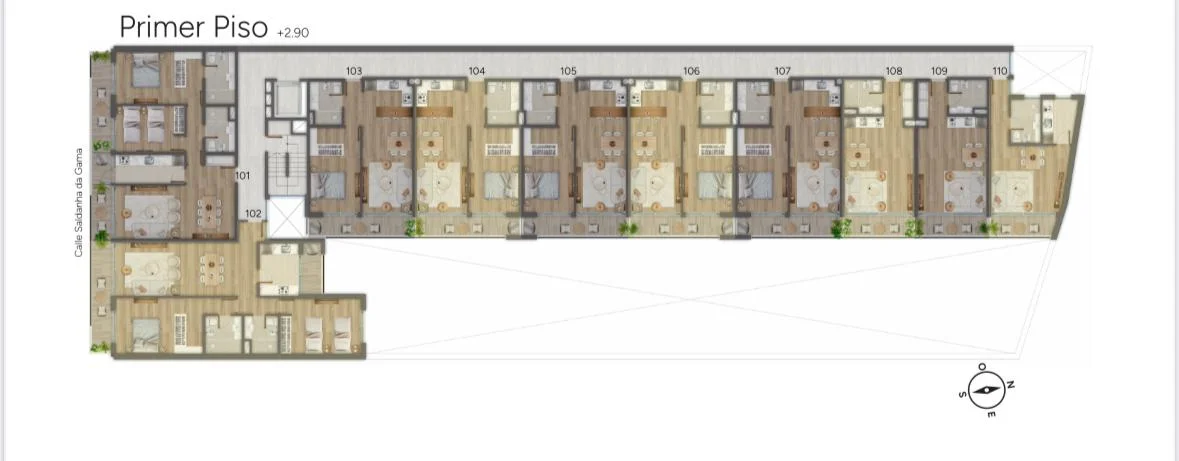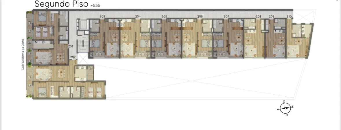 Cuenta con un total de 49 unidades. Ofrece tipologías monoambiente y de 1 y 2 dormitorios. Todas las unidades cuentan con calefacción por losa radiante eléctrica y previsión para aire acondicionado. Todos los vidrios son DVH.