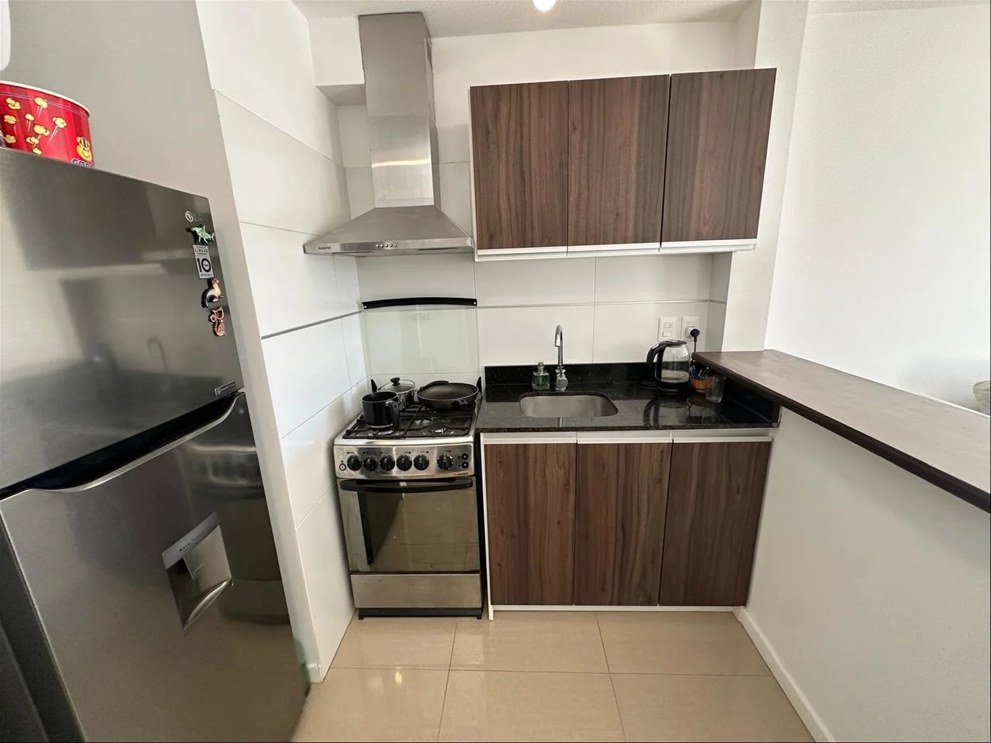 Cocina integrada, cuenta con doble mesada, campana de extracción, buena capacidad de muebles aéreos y bajo mesada