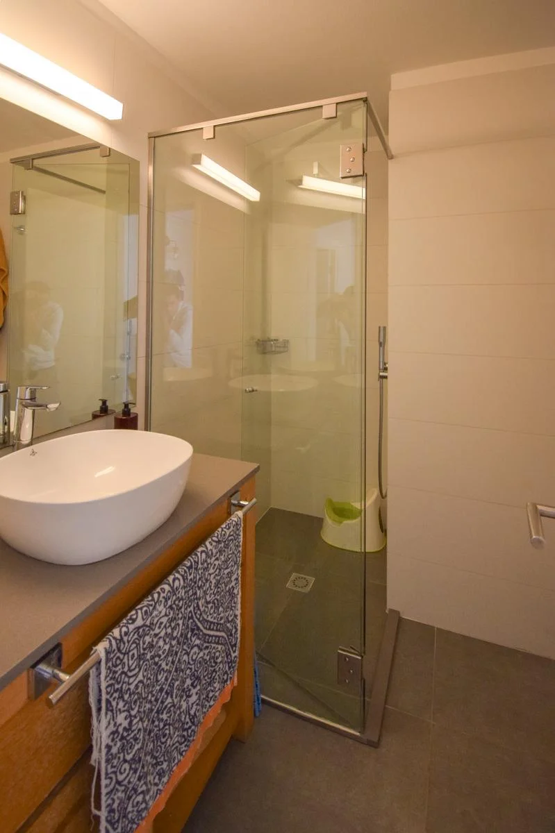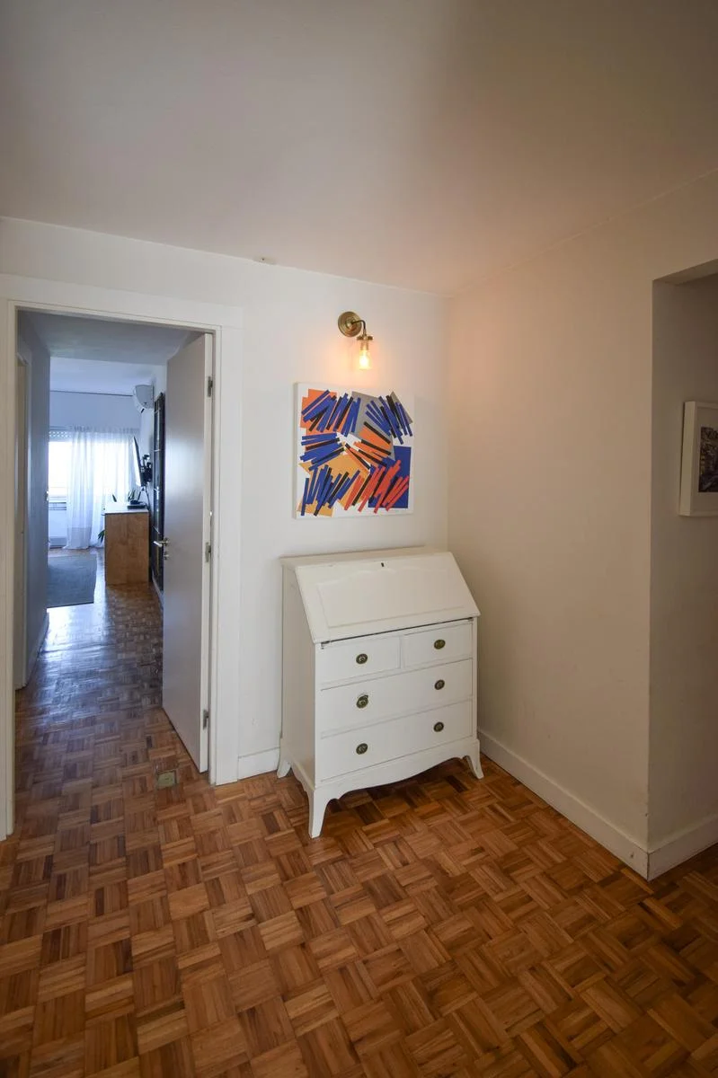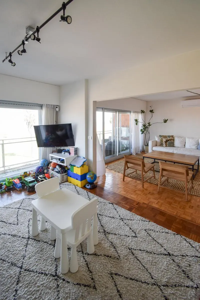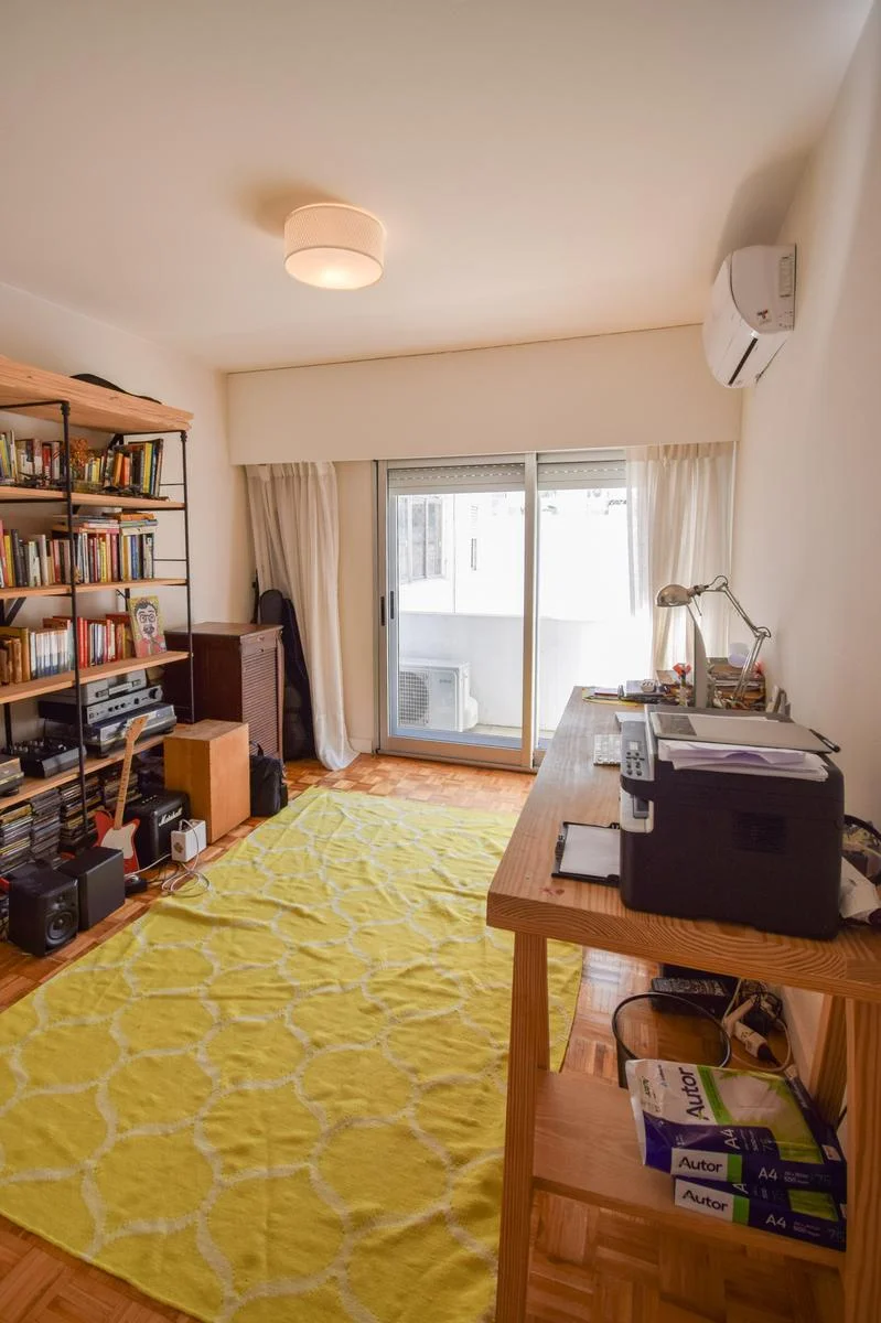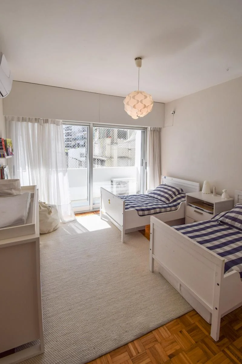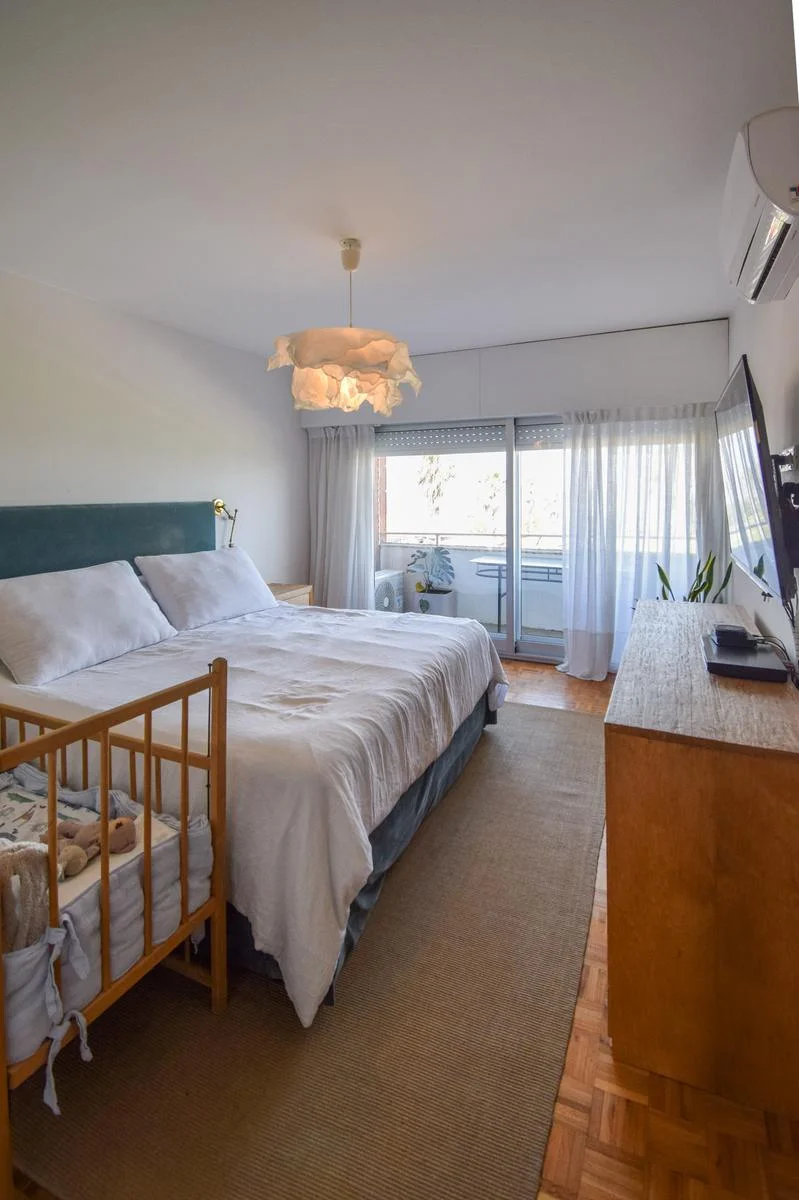 La suite (con walk in closet) tiene vista a la rambla y los otros dos cuartos al contrafrente (orientación norte) comparten un baño (reciclado) muy cómodo.