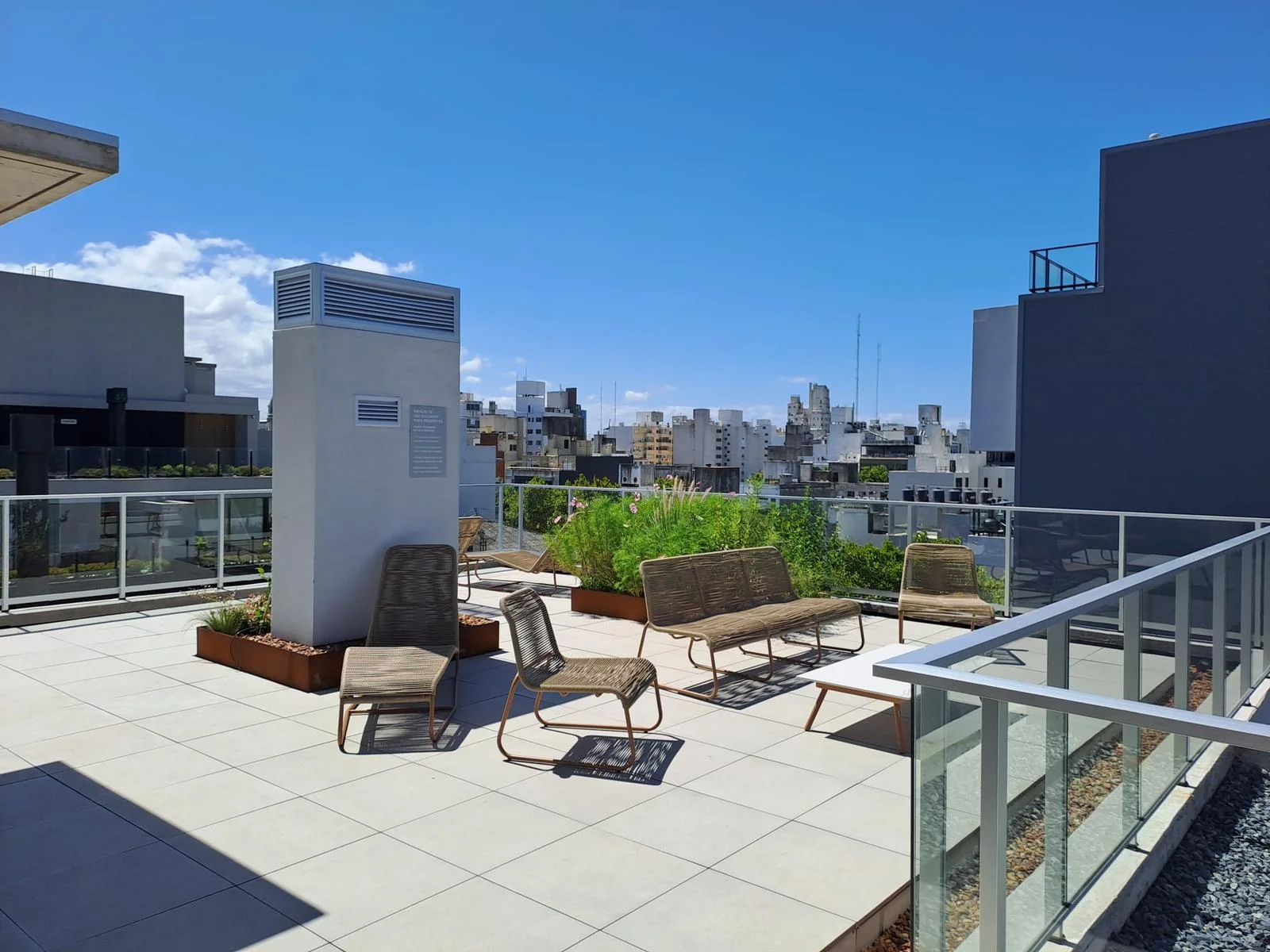 Monoambiente a estrenar con garage y balcón – 202623 m² bien distribuidos, con cocina integrada, baño completo y excelente luz natural. Cuenta con cerradura biométrica.Edificio con amenities completos: coliving, parrilleros, gimnasio, solarium, laundry, bicicletas y portero virtual.