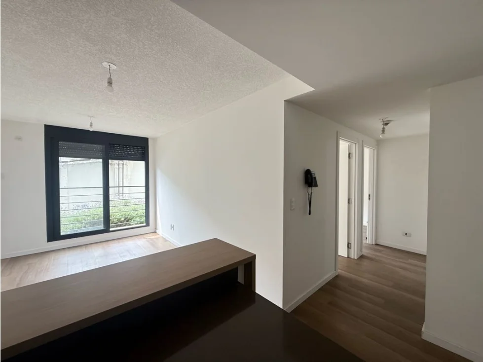 • Living comedor con gran puerta ventana y salida a terraza, cortina eléctrica