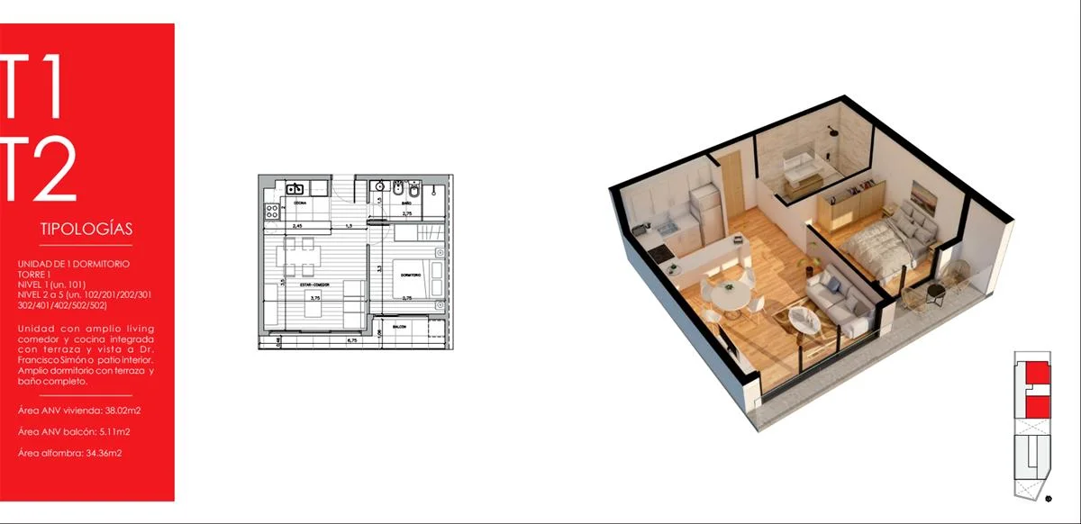 1, 2 dormitorios y garajes. U$S 123.151* Y 2 dormitorios U$S 153.550