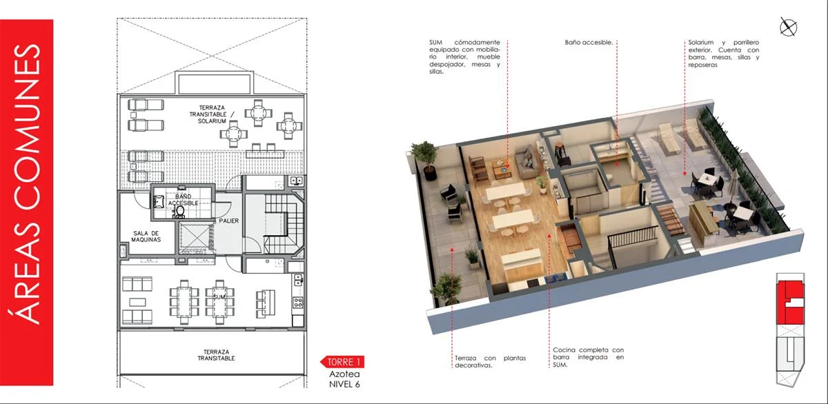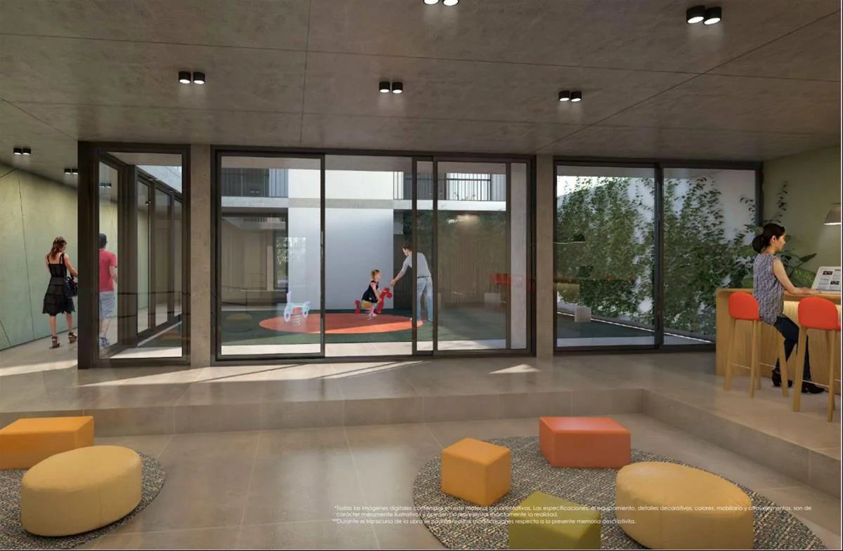 Edificio con accesibilidad, con dos ascensores de recorrido completo desde los garajes en el subsuelo hasta los espacios comunes en el nivel 6.