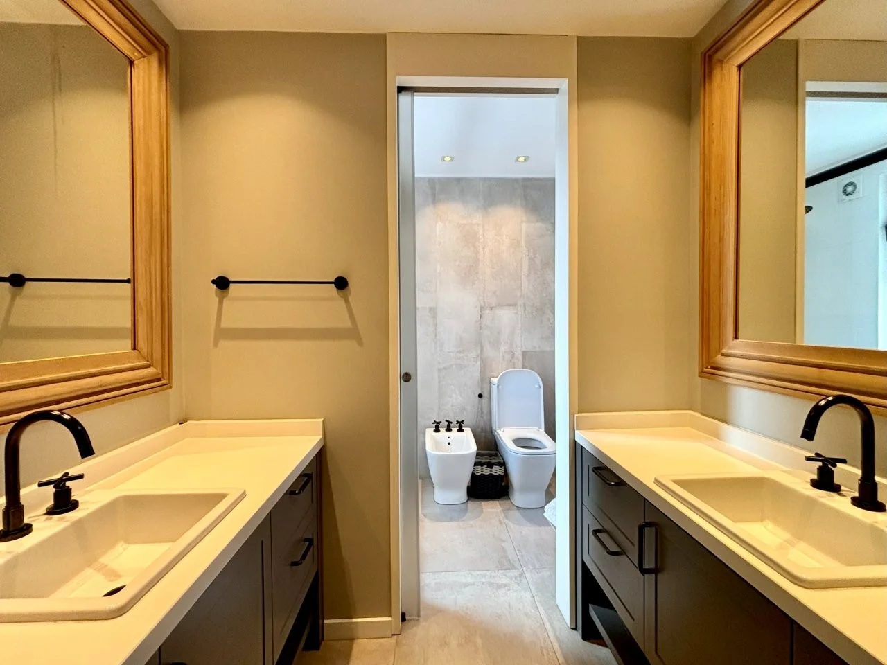 Calefacción por losa por bomba de calor. Aire acondicionado en todos los ambientes. Aberturas de vidrio doble.