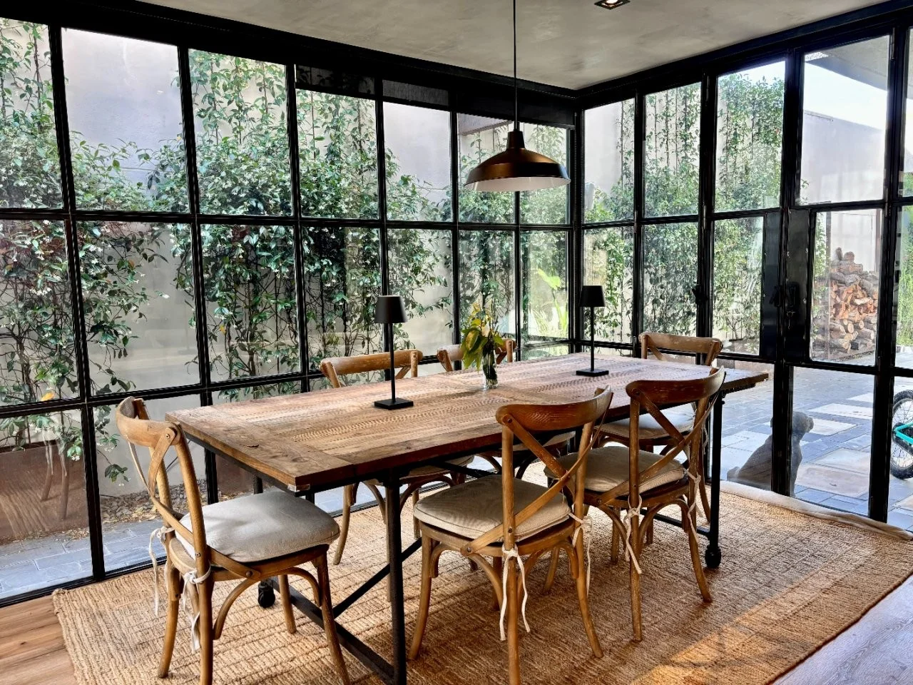 Planta Baja: Hall de entrada, toilette, living con estufa a leña, comedor y estar diario integrado a amplia cocina. Dormitorio de servicio completo y lavadero.