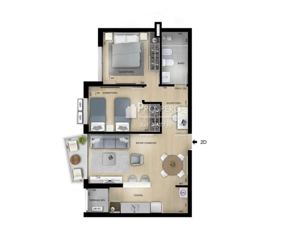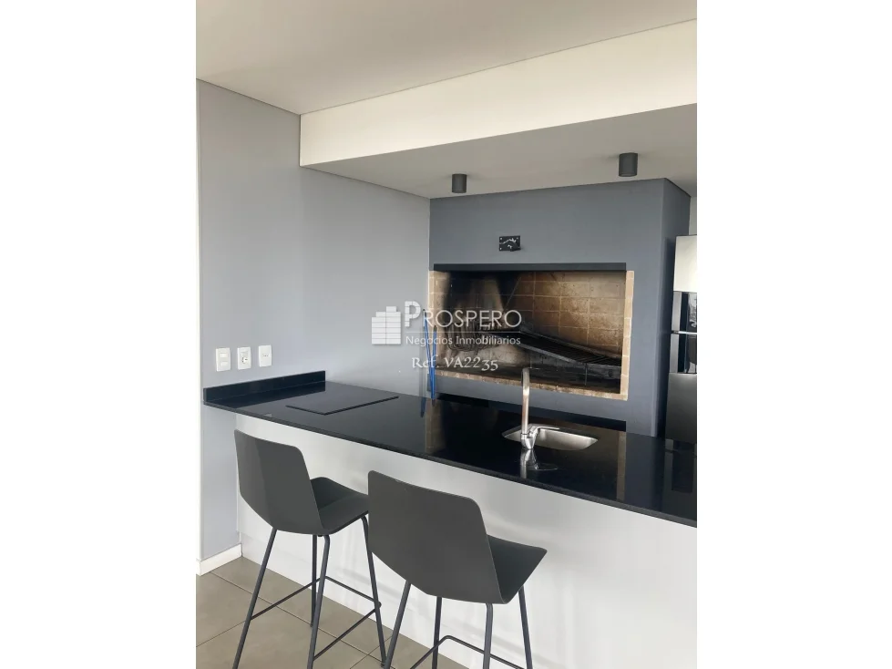Amplio living-comedor con aire acondicionado y salida a terraza, cocina integrada con muebles aéreos y bajo mesada campana. Además cuenta con salida a terraza lavadero.