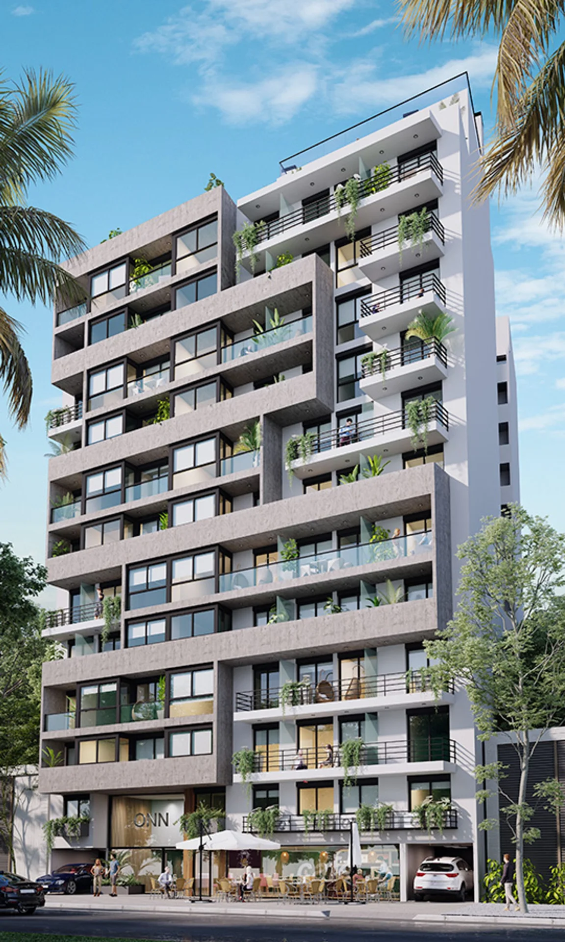 ONN AVENIDA está ubicado en Avenida Italia 3175, en la ciudad de Montevideo, Uruguay. Cuenta con: subsuelo con cocheras y bici-parking, planta baja con local comercial y gimnasio, 11 pisos de apartamentos (unidades monoambientes, 1 y 2 dormitorios) + galibo. Además, una planta de amenidades íntegramente equipada, con salón de usos múltiples, barbacoa, solarium y piscina.