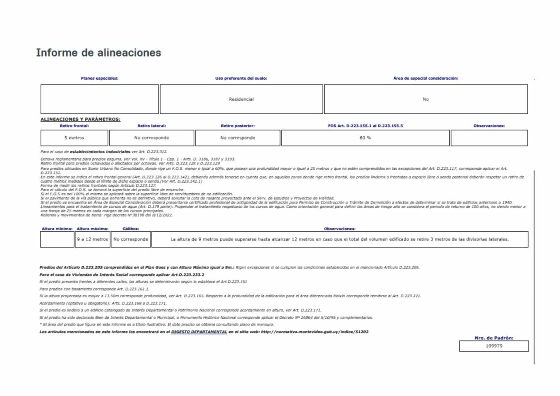 Altura Permitida 9 a 12m