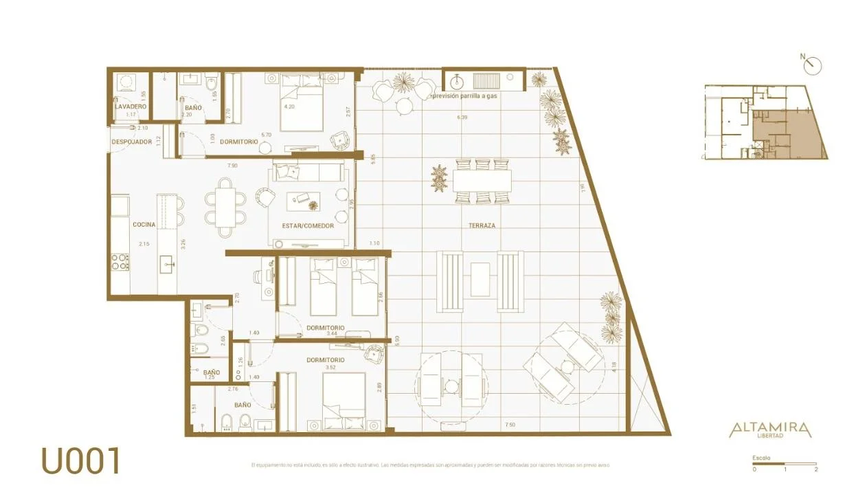 La publicación esta referida al apartamento en planta baja de 3 dormitorios y 3 baños con suite Unidad 001