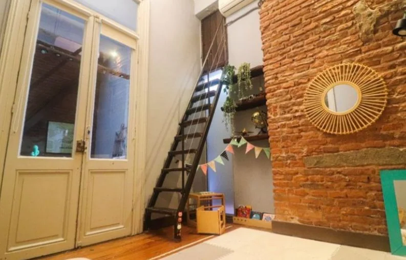 Las paredes de ladrillo visto y los pisos de pinotea original aportan un toque cálido y sofisticado. Además, tiene grandes ventanales al frente y contrafrente, que aseguran ventilación cruzada y ofrecen vistas amplias y despejadas desde ambos lados.