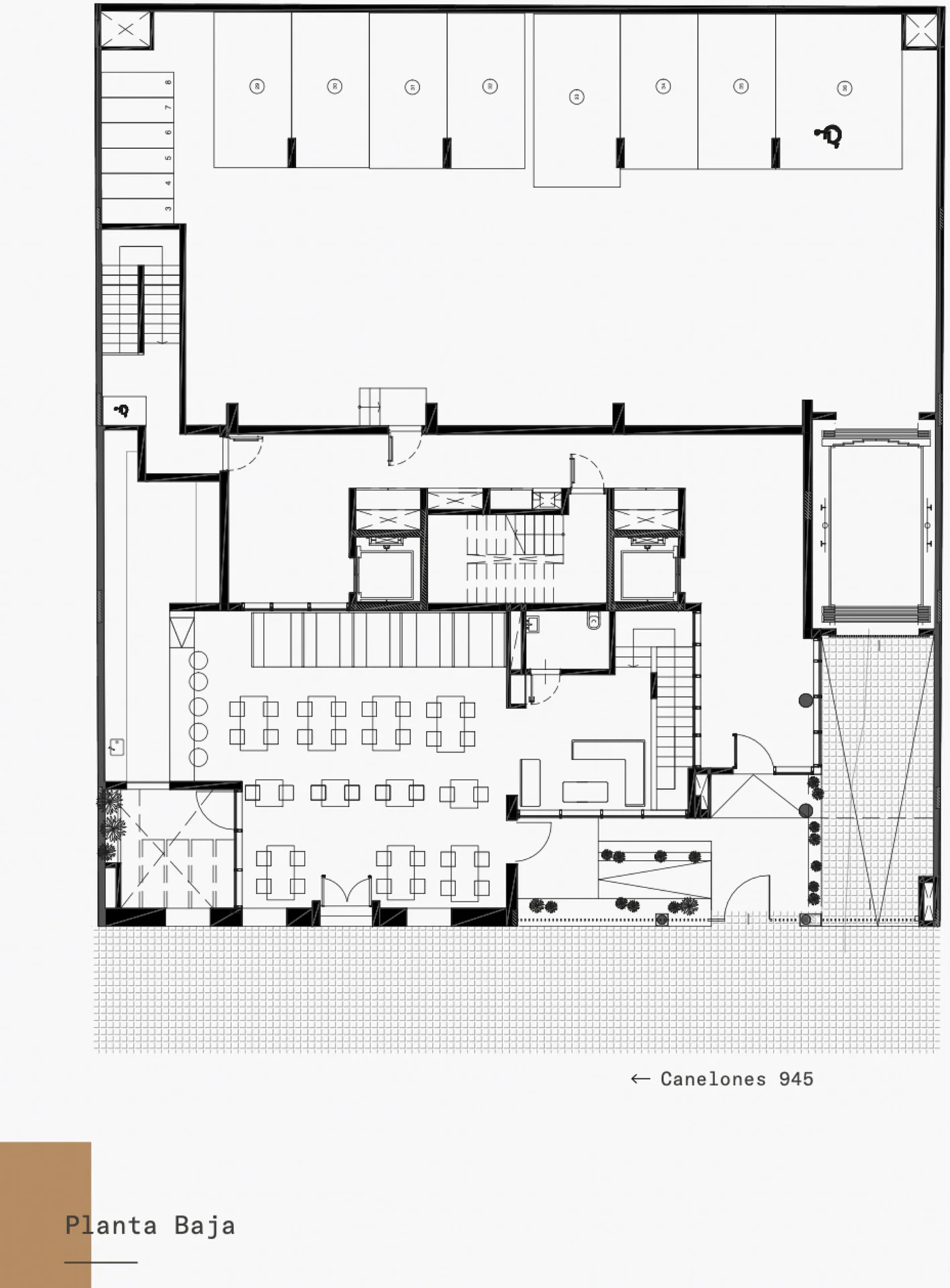Restaurante en Planta Baja, manteniendo fachada de casona existente.