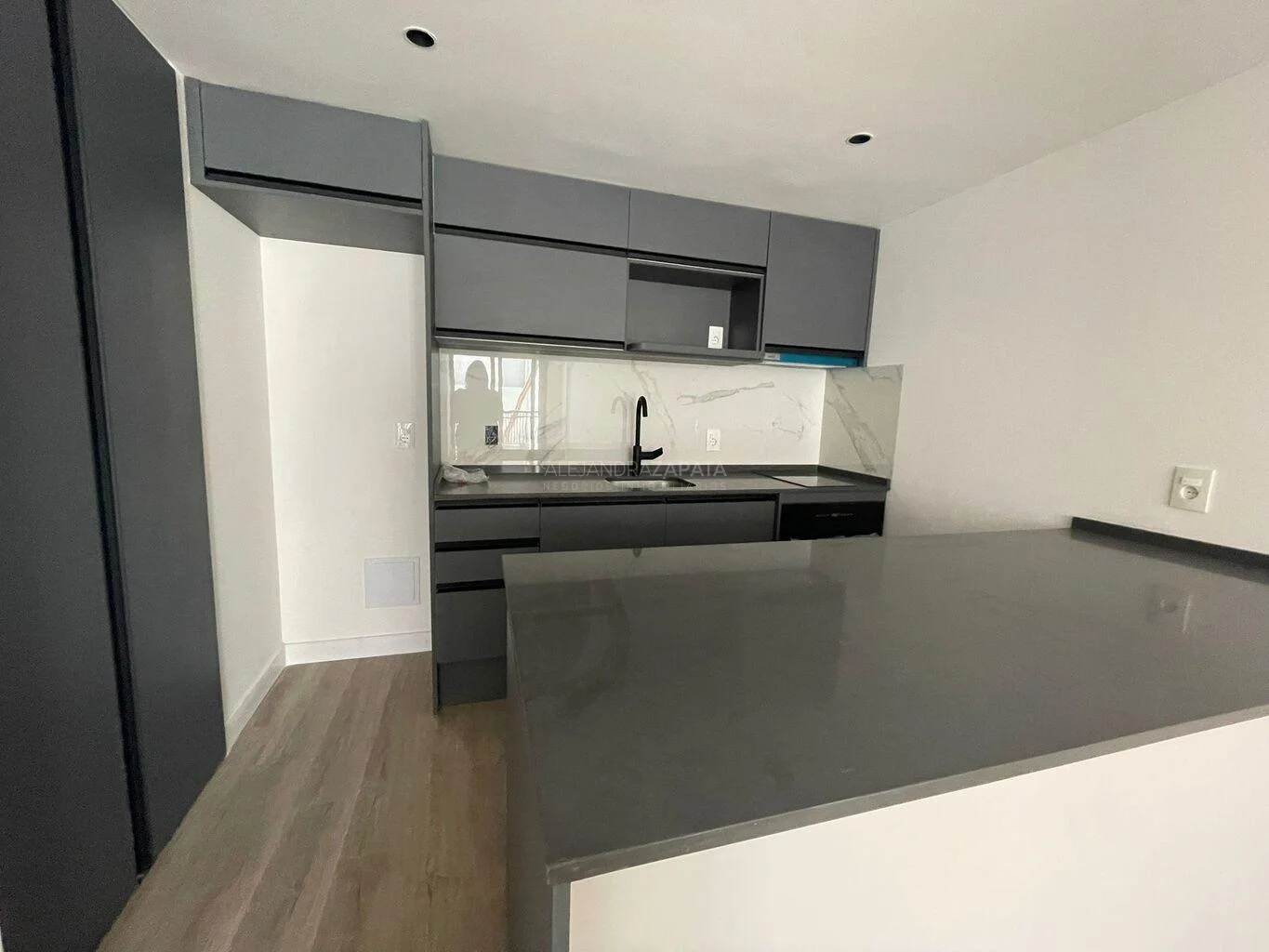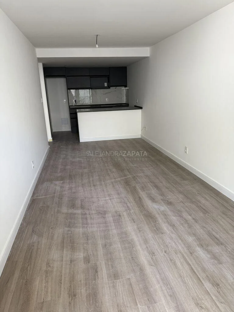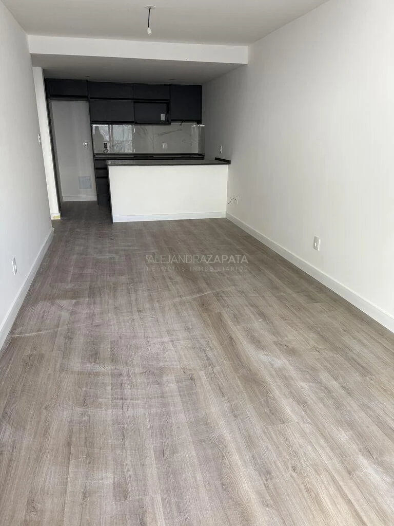 Living comedor super amplio 8.55 x 2.90 con cocina definida mediante una moderna barra divisoria. Aire acondicionado instalado.