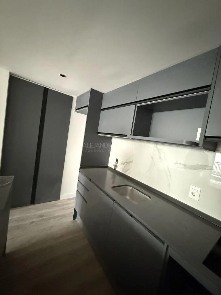 Excelente capacidad de placares sobre y bajo mesada. La cocina se entrega equipada con horno, anafe y campana.