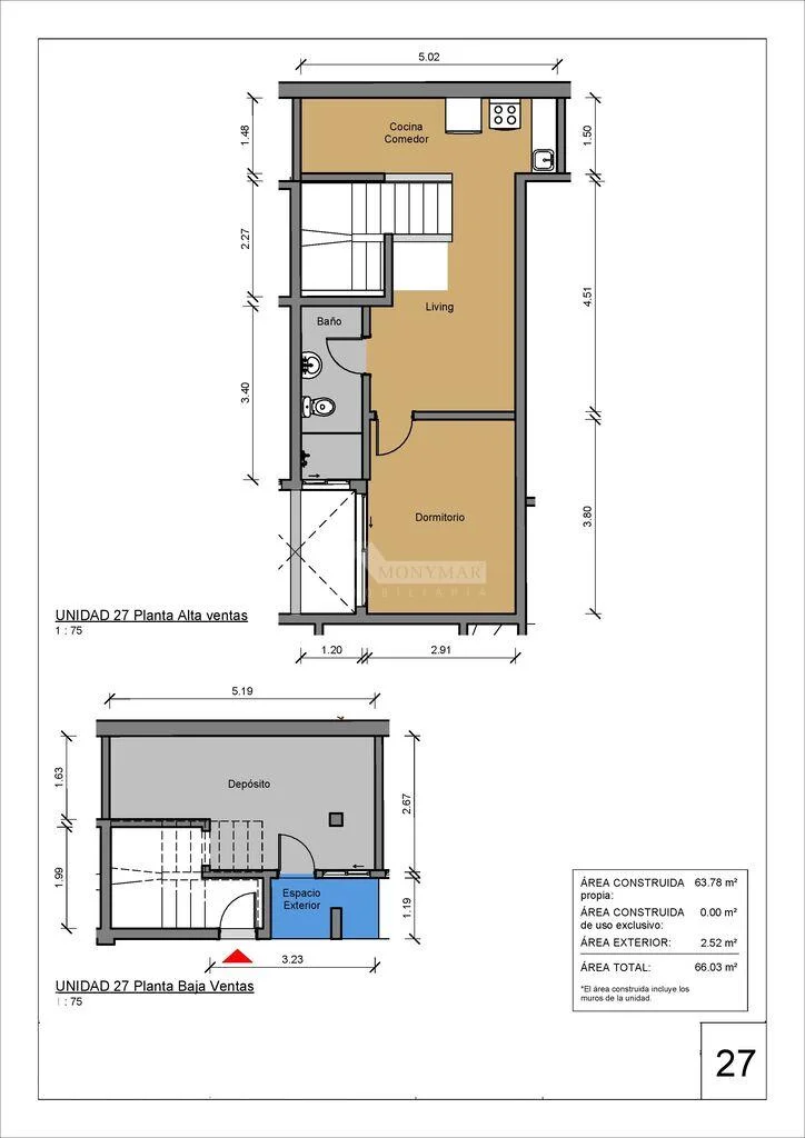 27) 66,30m2 totales + 2,52m2 area exterior.