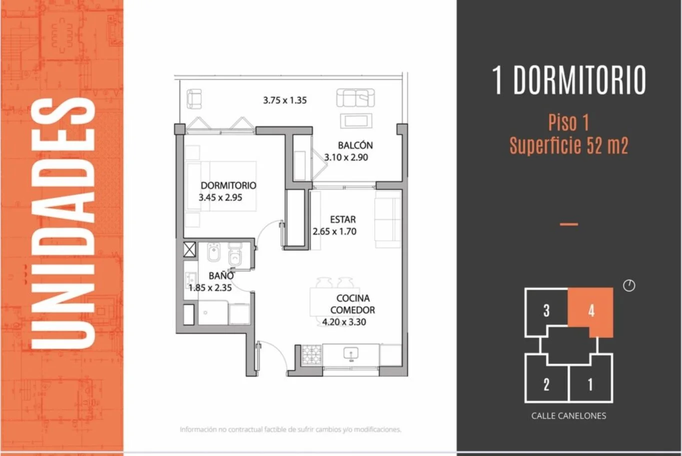 • Unidades de 1 dormitorio: USD 132.300 – 44 m² + 12 m² de terraza