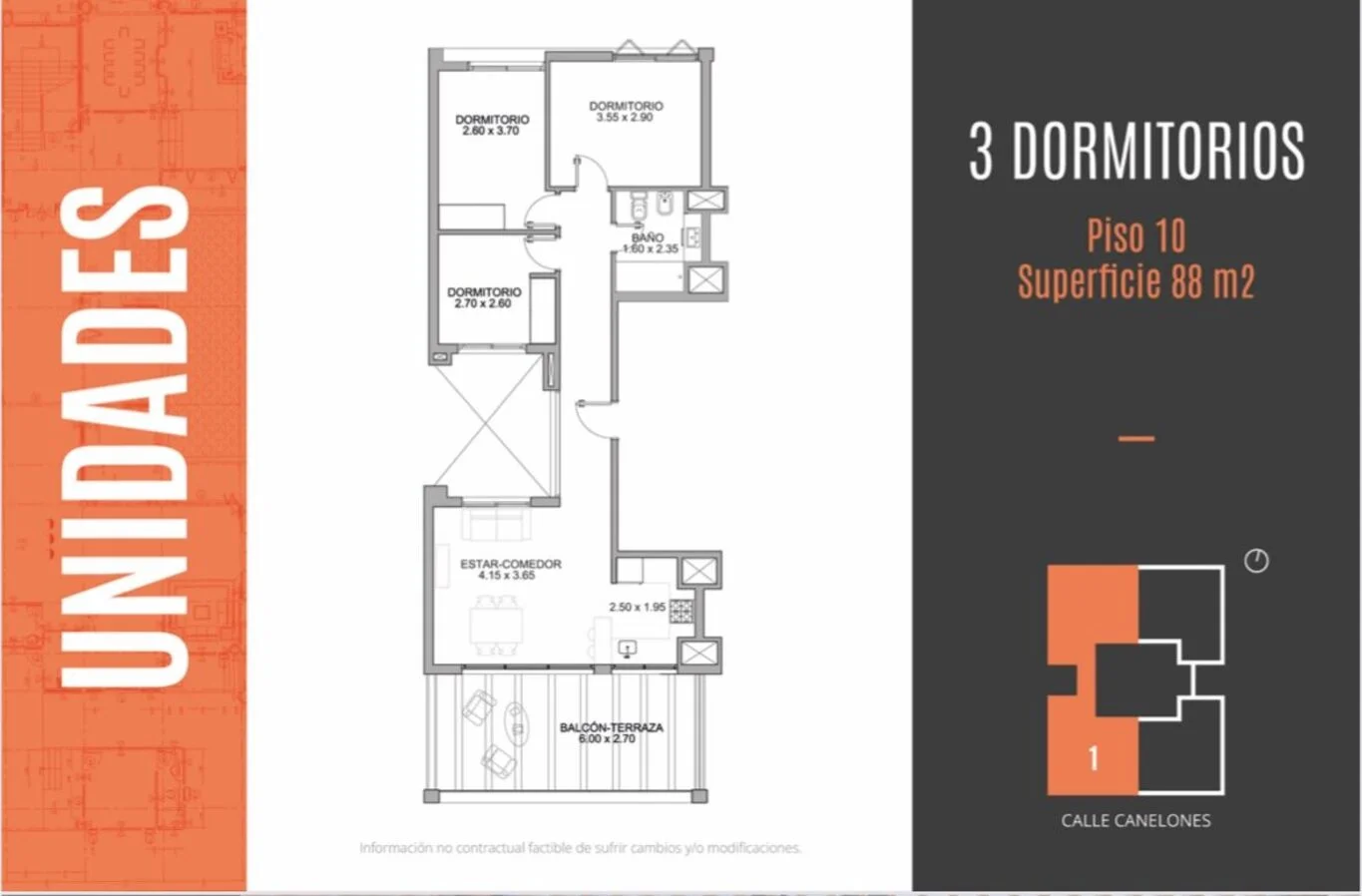 • Piso 10 – Unidad 1001: USD 229.900 – 3 dormitorios pasante, 73 m² cubiertos + 19,5 m² semicubiertos