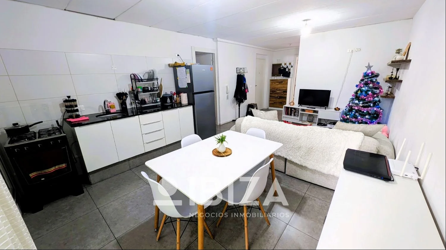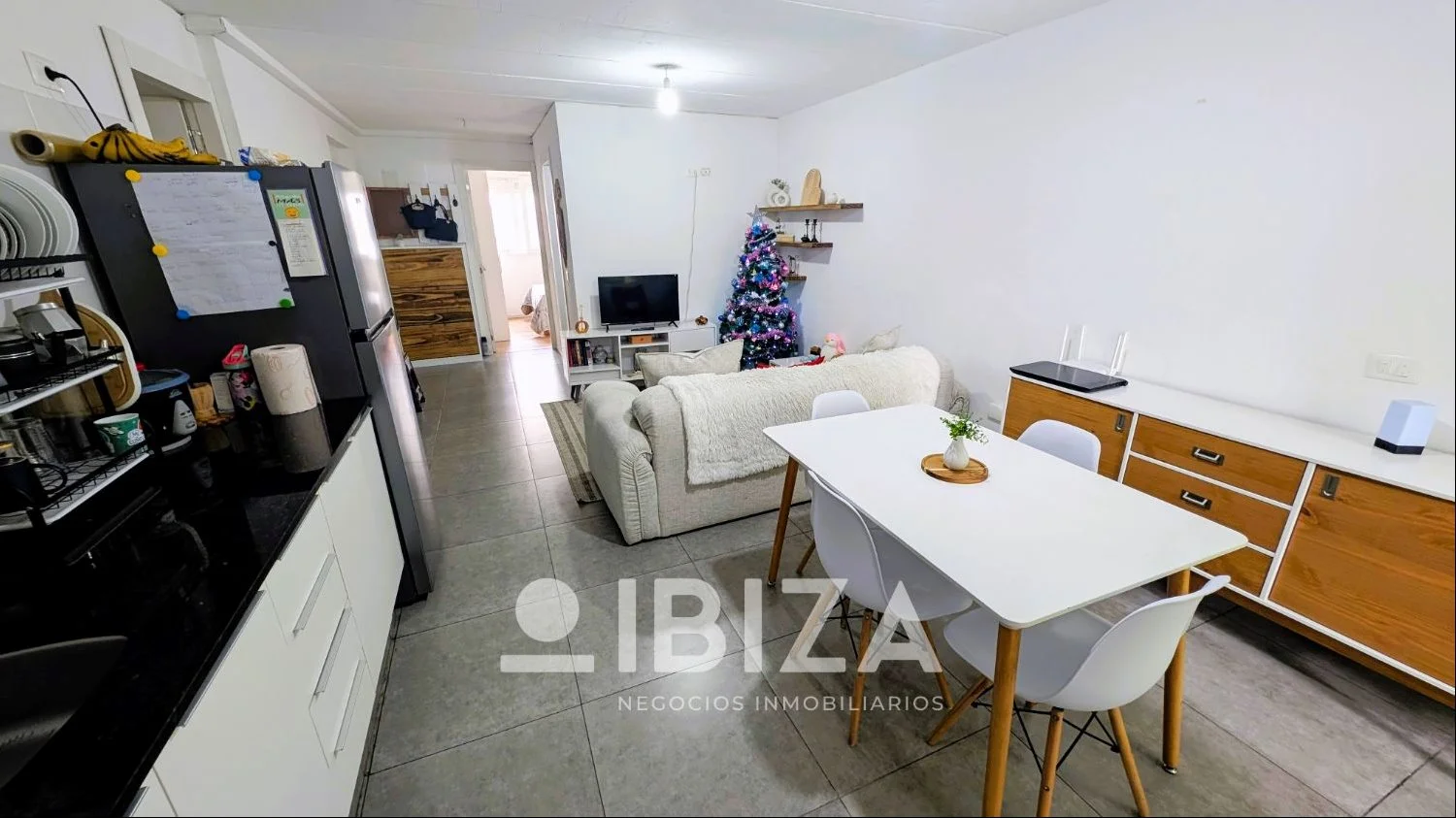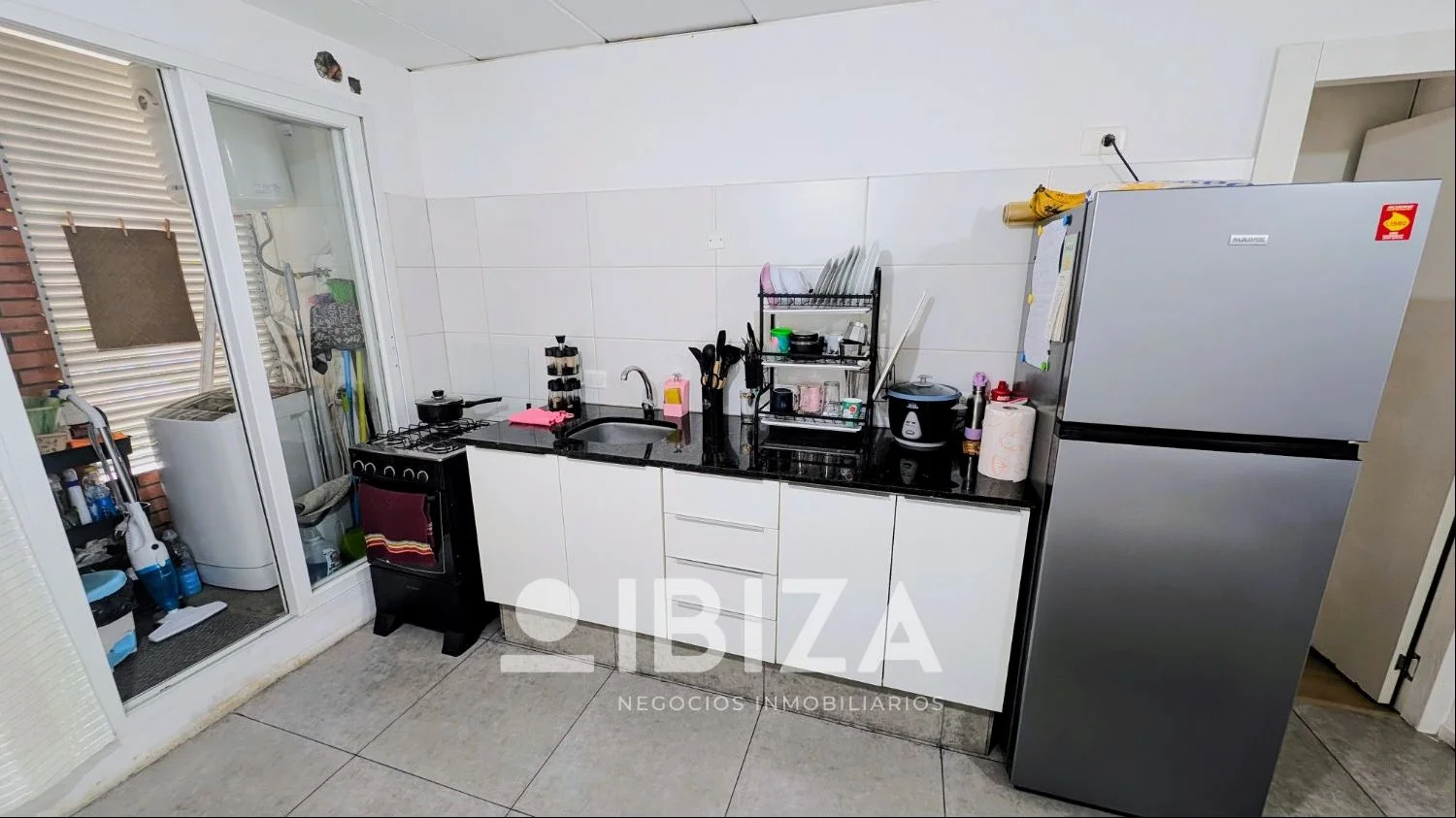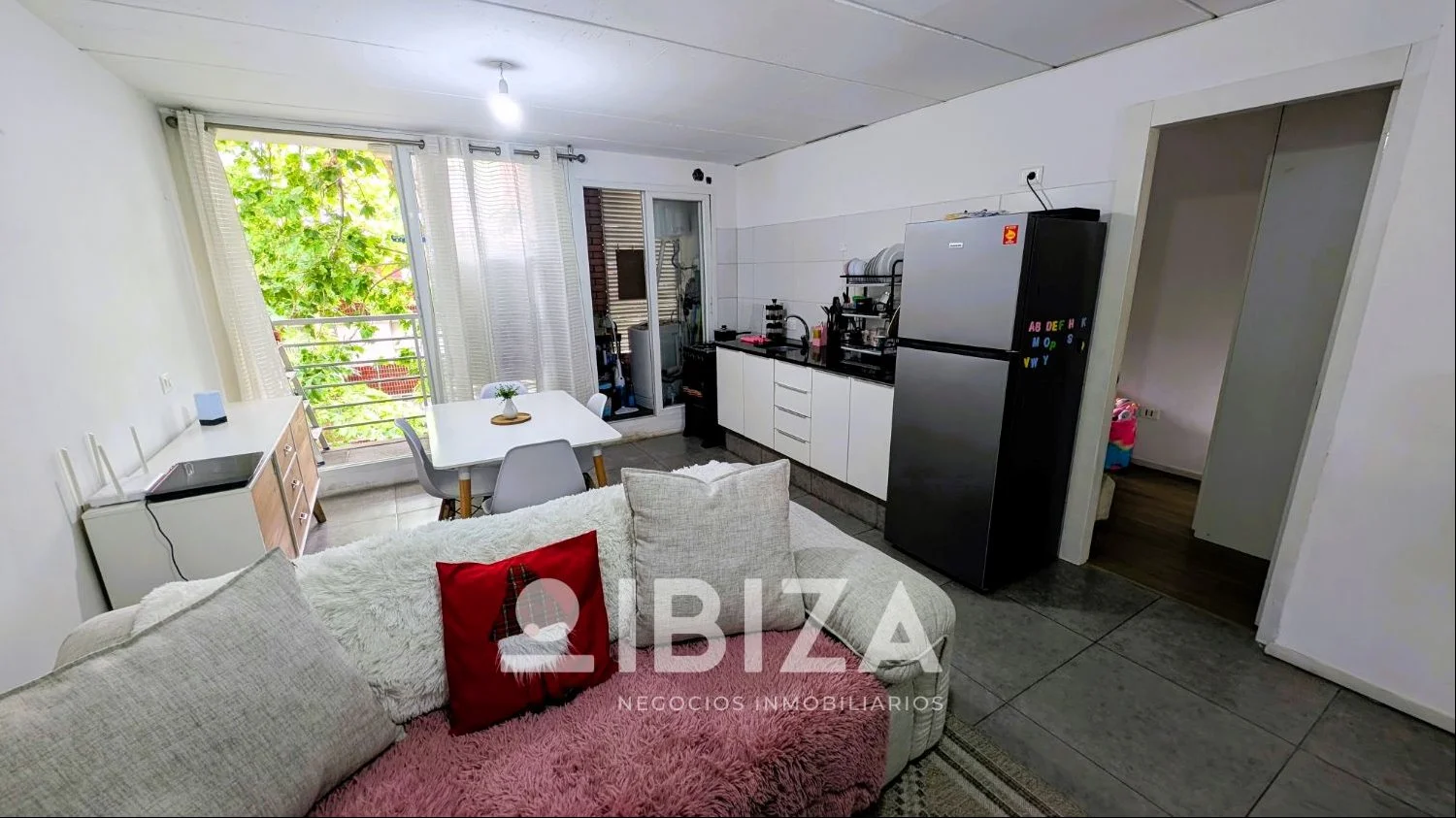 - Amplio y luminoso living-comedor con cocina integrada con placares bajo mesada y salida a un balcón al frente y a una terraza lavadero con conexión para lavarropas. Posee pisos de porcelanato.
