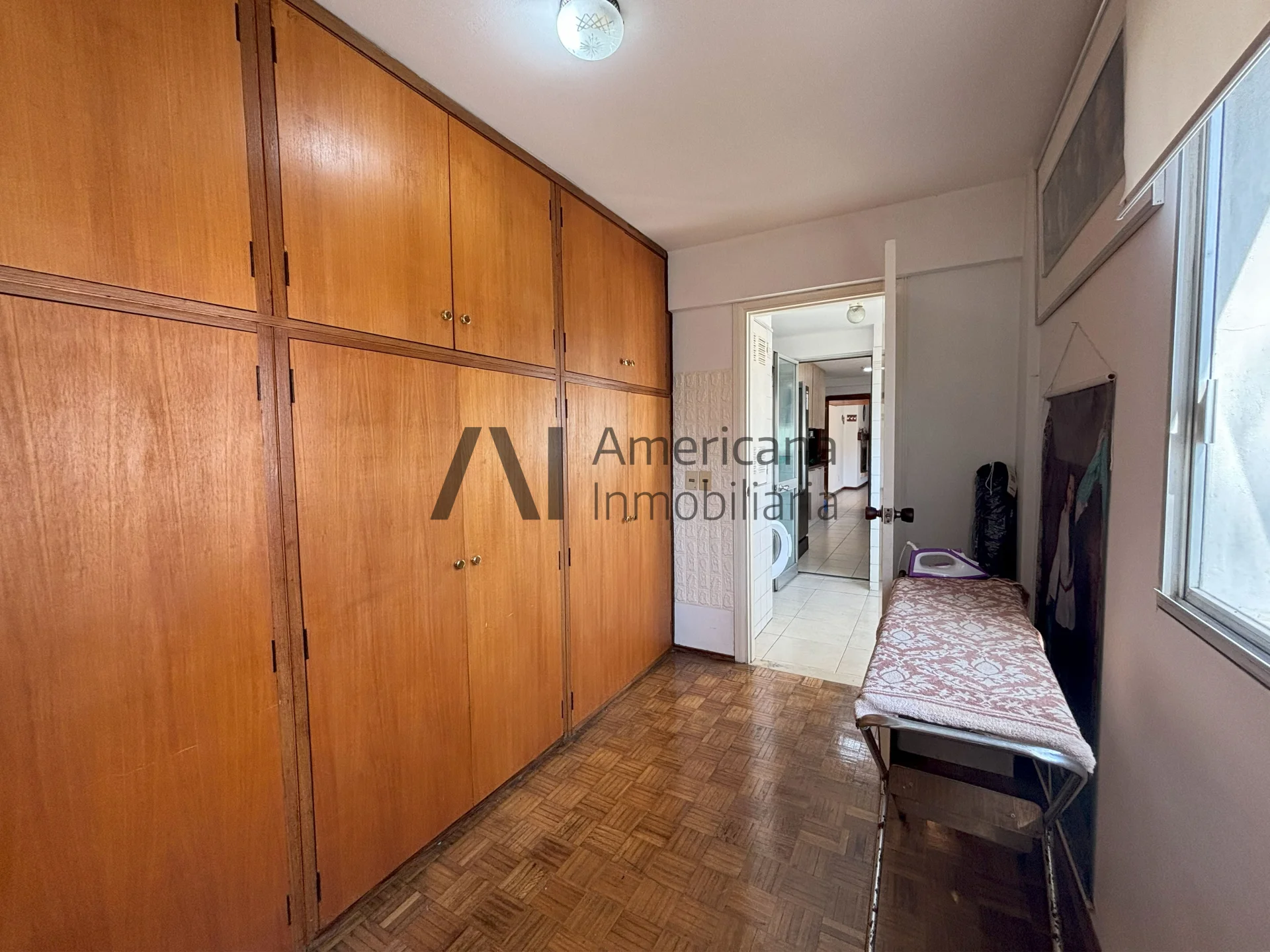 Terraza lavadero cerrada entre cocina y dependencia de servicio. Dormitorio de servicio de buenas dimensiones con piso de parquet y placard empotrado.