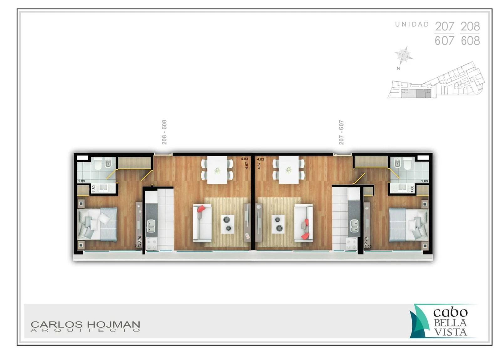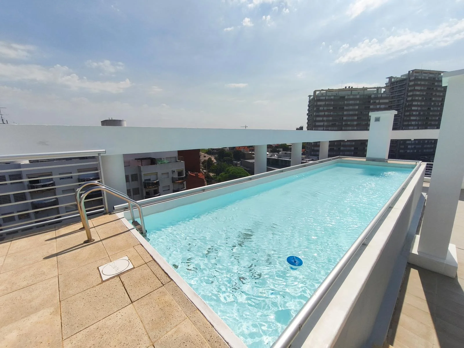 El edificio tiene portería física las 24 hs, además de sistema de CCTV, barbacoa con parrillero, solárium y piscina.