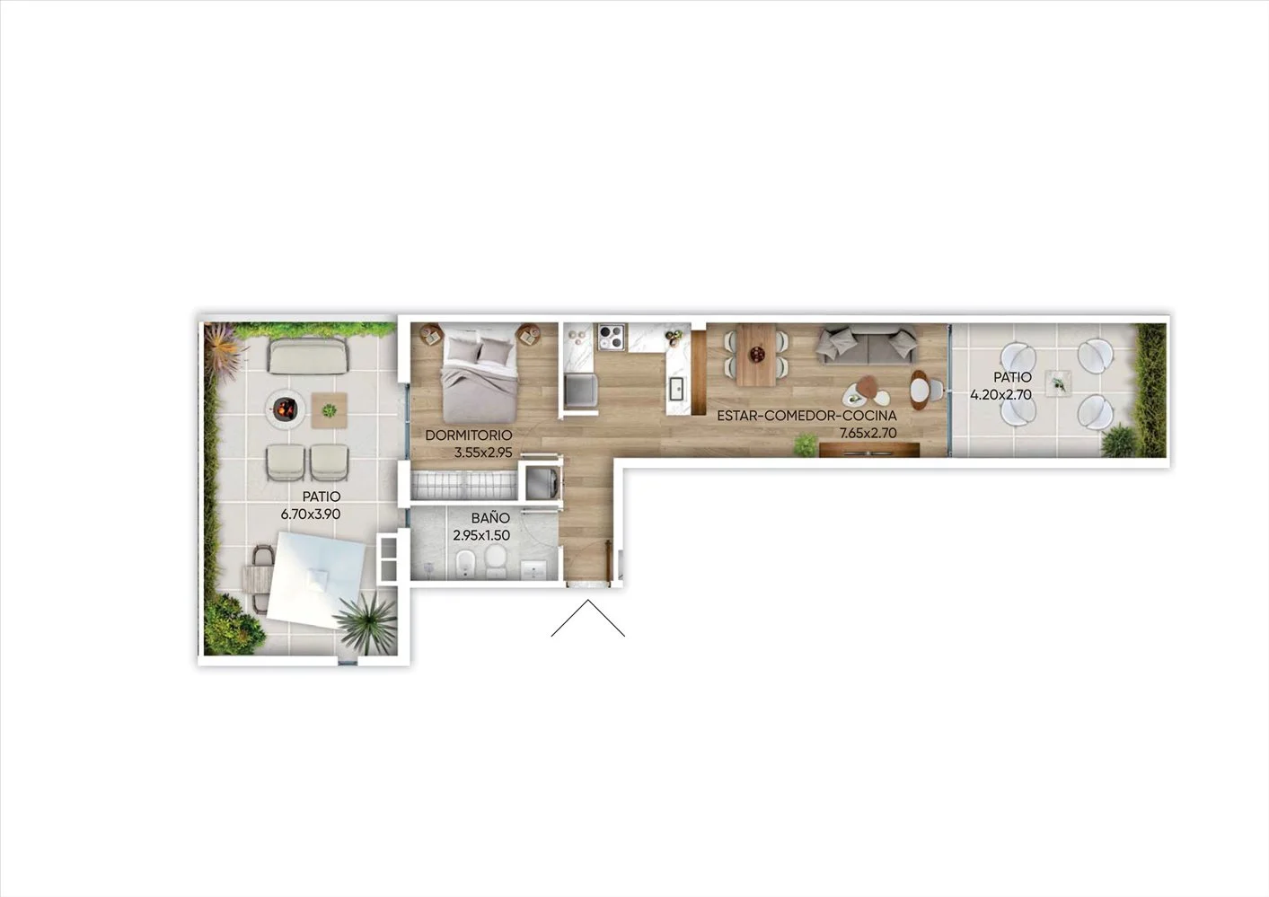 Tipología 1 dormitorio con patio.