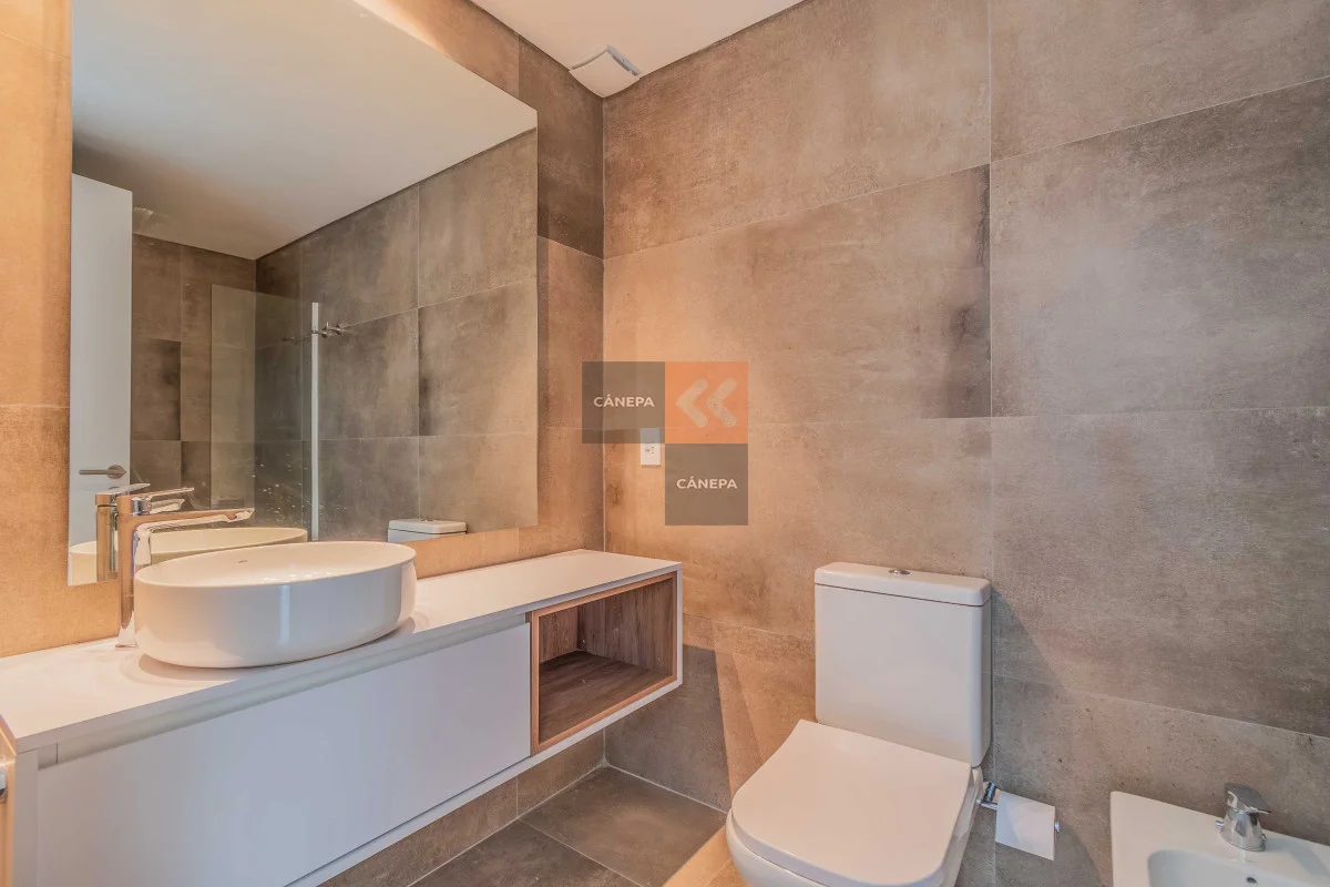 Living comedor con salida a terraza con parrillero Cocina semi integrada con horno, campana y anafe 2 dormitorios, principal con vestidor 2 baños completos, uno en suite Calefacción por losa radiante hidráulica y agua caliente central con caldereta Garaje para 1 auto Edificio cuenta con servicio de limpieza de Lunes a Viernes de 12:00 a 16:00 hrs. Referencia Interna : Tera-16726