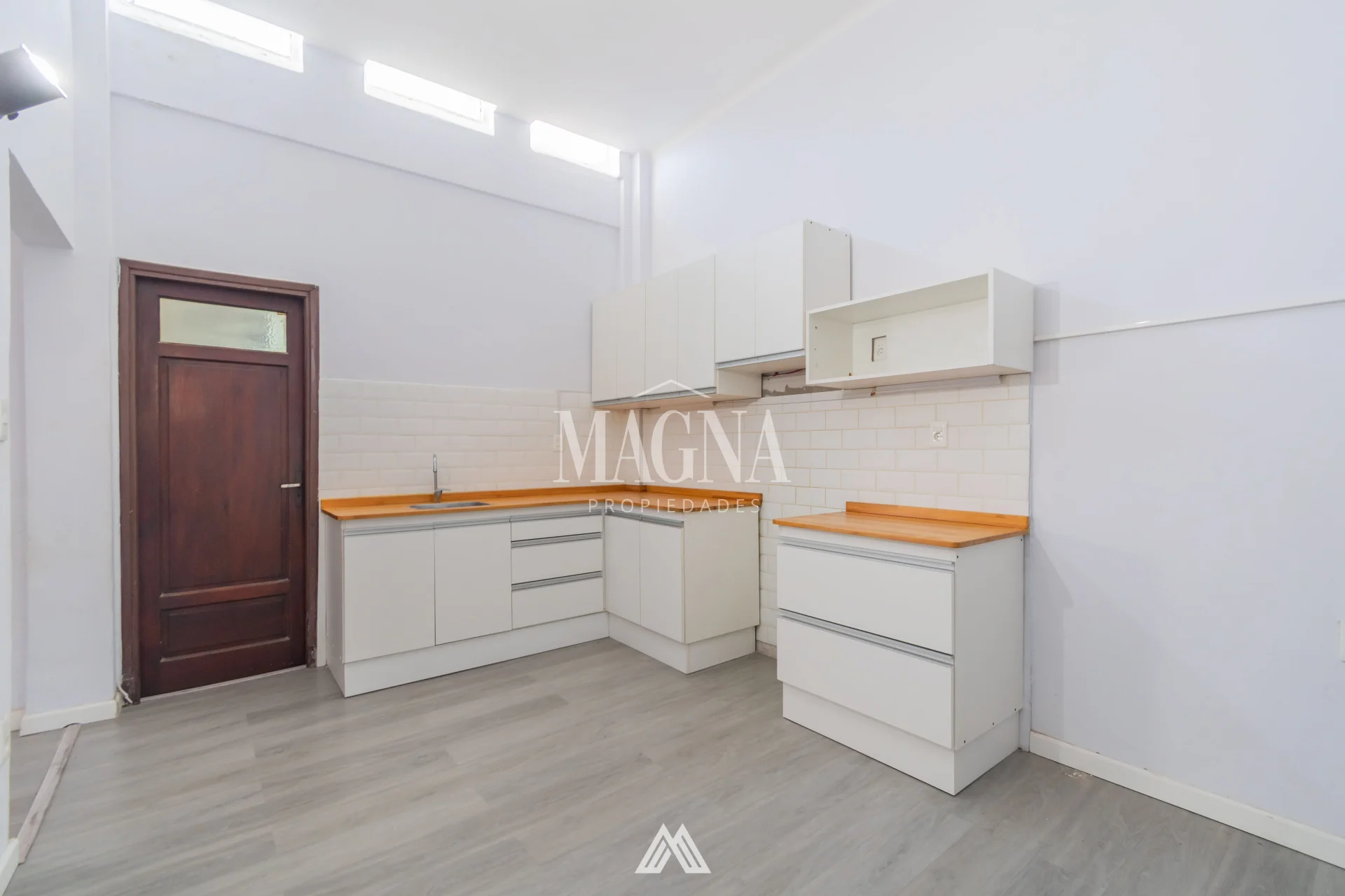 La cocina se encuentra en el centro del apartamento, de buen tamaño y con espacio para comedor diario. Desde allí, se accede a otro dormitorio, también de generosas dimensiones con orientación este. Caminando hacia el frente, encontramos un baño completo, con conexión para lavarropas. Finalmente, unos escalones nos llevan al dormitorio principal, con ventana al frente y excelente luz natural.