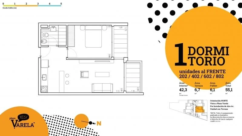 Este apartamento al frente, cuenta con un cómodo dormitorio, cocina integrada, baño y terraza. La unidad se entrega equipado con placar en el dormitorio, muebles aéreos y bajo mesada en la cocina, listo para estrenar. Todas las unidades cuentan con balcón, construidas con estilo tradicional y terminaciones de alta calidad.