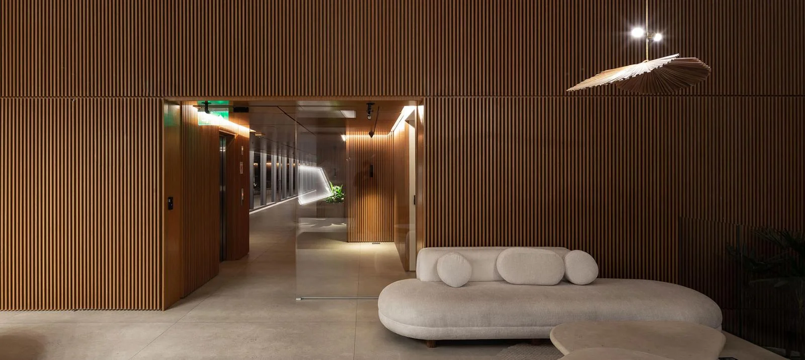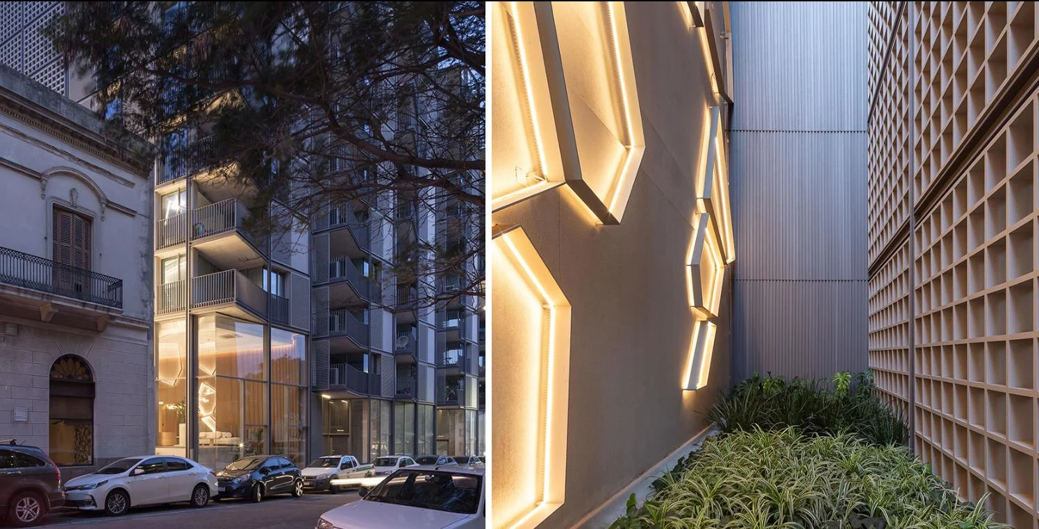 El edificio cuenta con Viviendas, Oficinas, Sauna, Vista al Río, Sky Bar, Solarium, Gym,  Bicicletas, Canal de nado climatizado, Biblioteca, Piscina descubierta, Jacuzzi, Barbacoa y Seguridad.