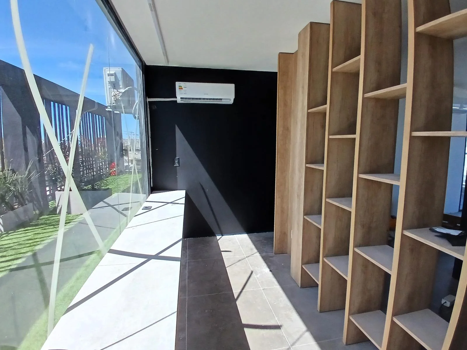 Apartamento living comedor con acceso a terraza de uso exclusivo, cocina integrada equipada con mueble bajo mesada, mueble aéreo, anafe, campana y horno de empotrar. Dormitorio con Placar con hoja batiente. Baño completo.
