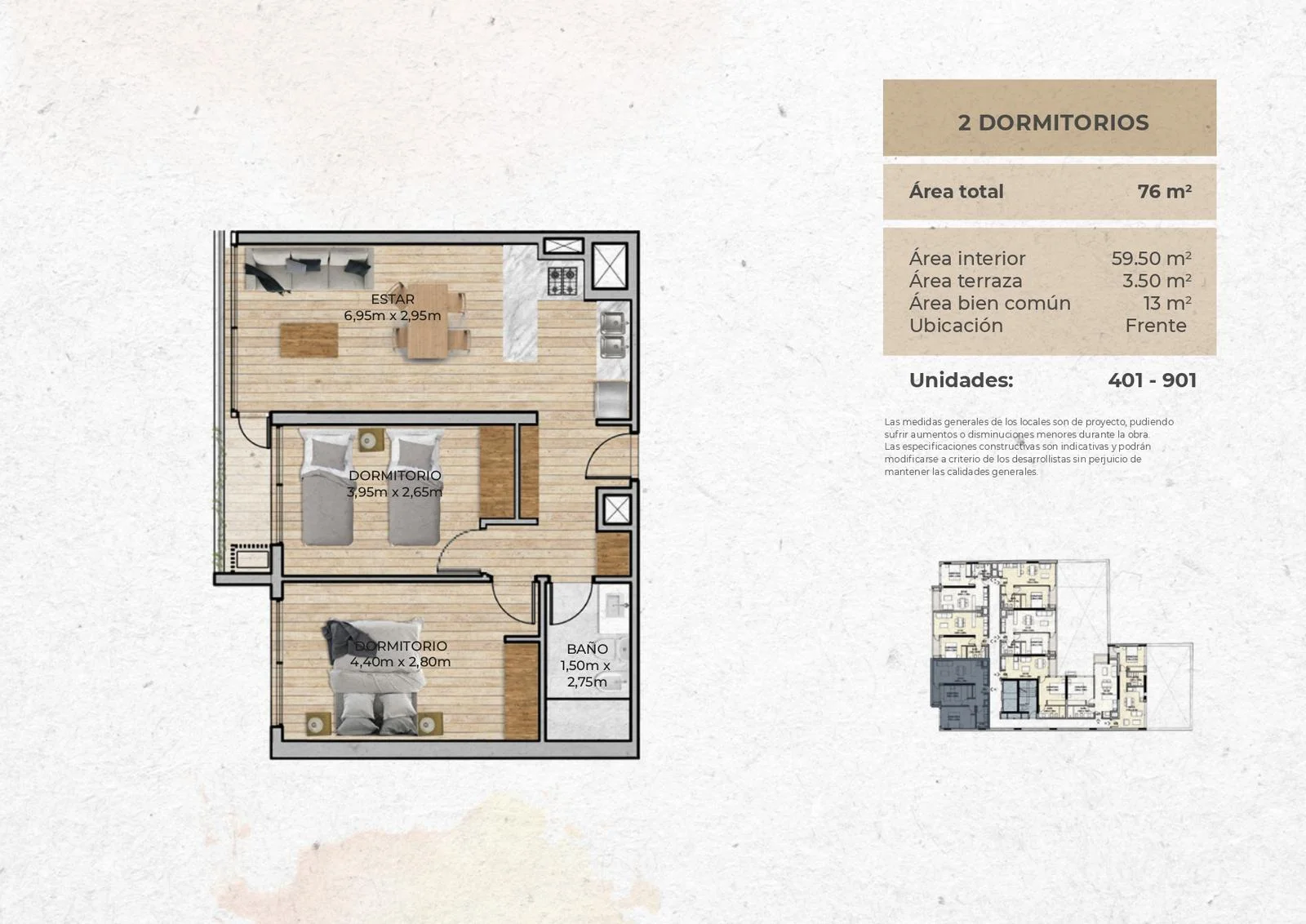 Las unidades se entregan con anafe, horno eléctrico, termotanque, luminarias y placares en dormitorio, garantizando practicidad y confort desde el primer día.