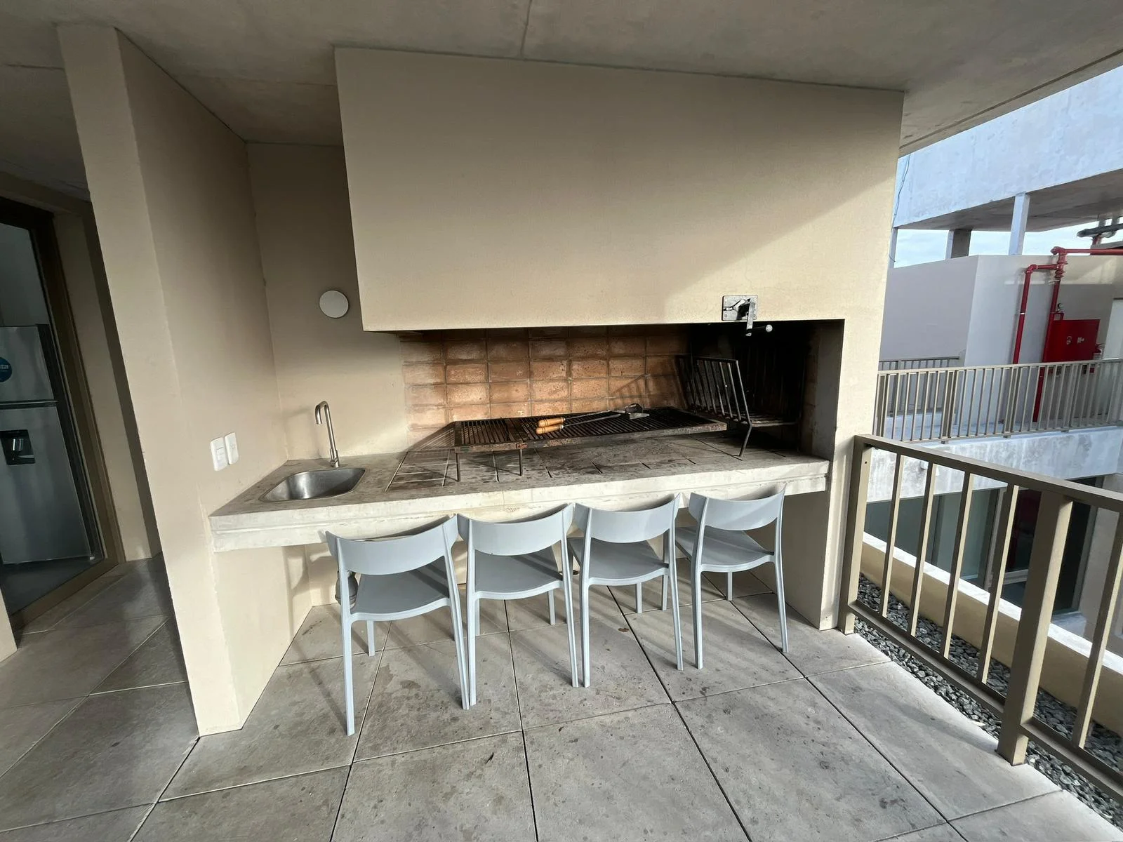 Equipamiento: Cocina con muebles bajo mesada y campana instalada.