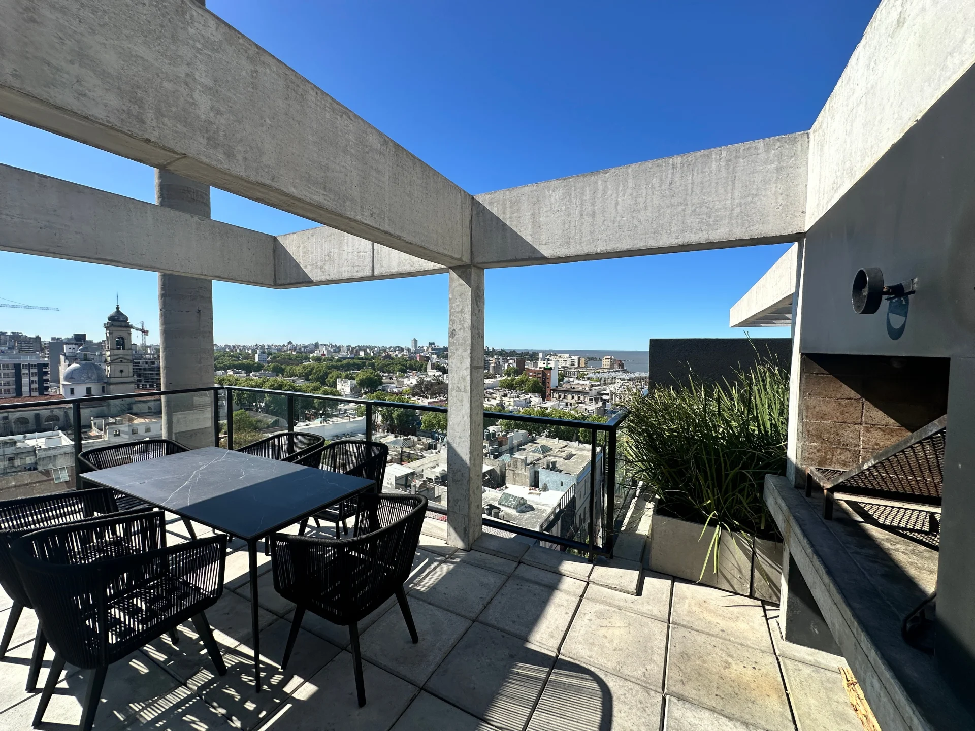 El edificio cuenta con portería remota, SUM con vistas panorámicas, parrillero común y laundry.