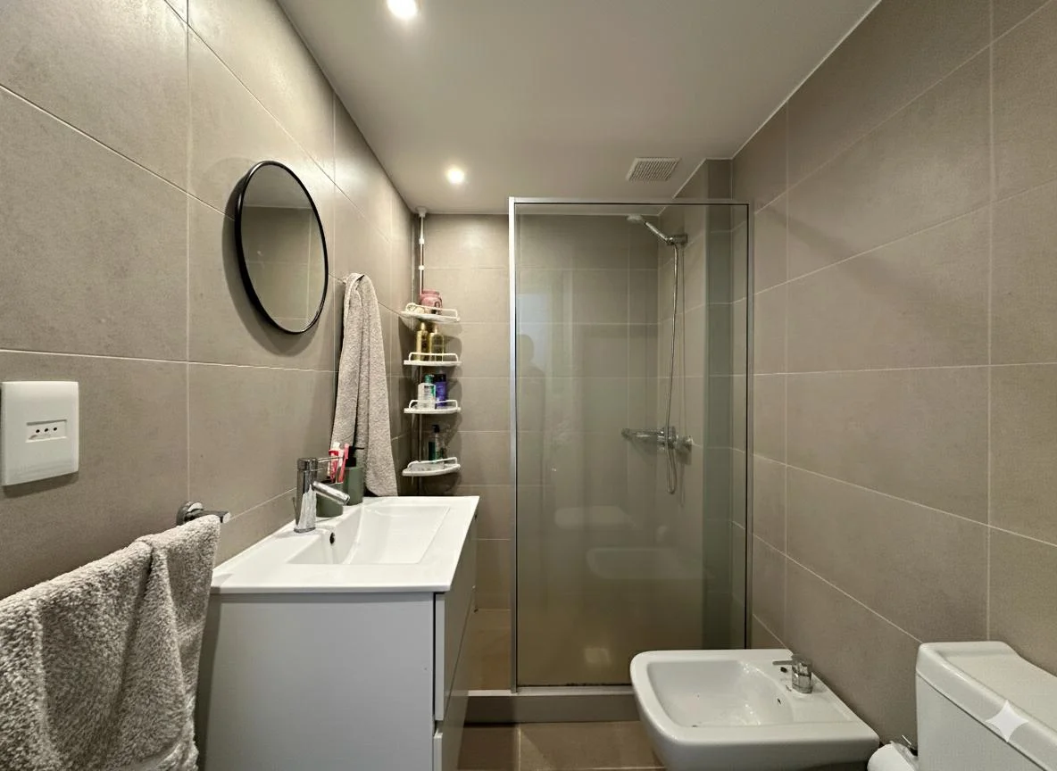 La zona de descanso se compone de un dormitorio bien iluminado. La unidad dispone de un baño completo con mampara y conexión para lavarropas.