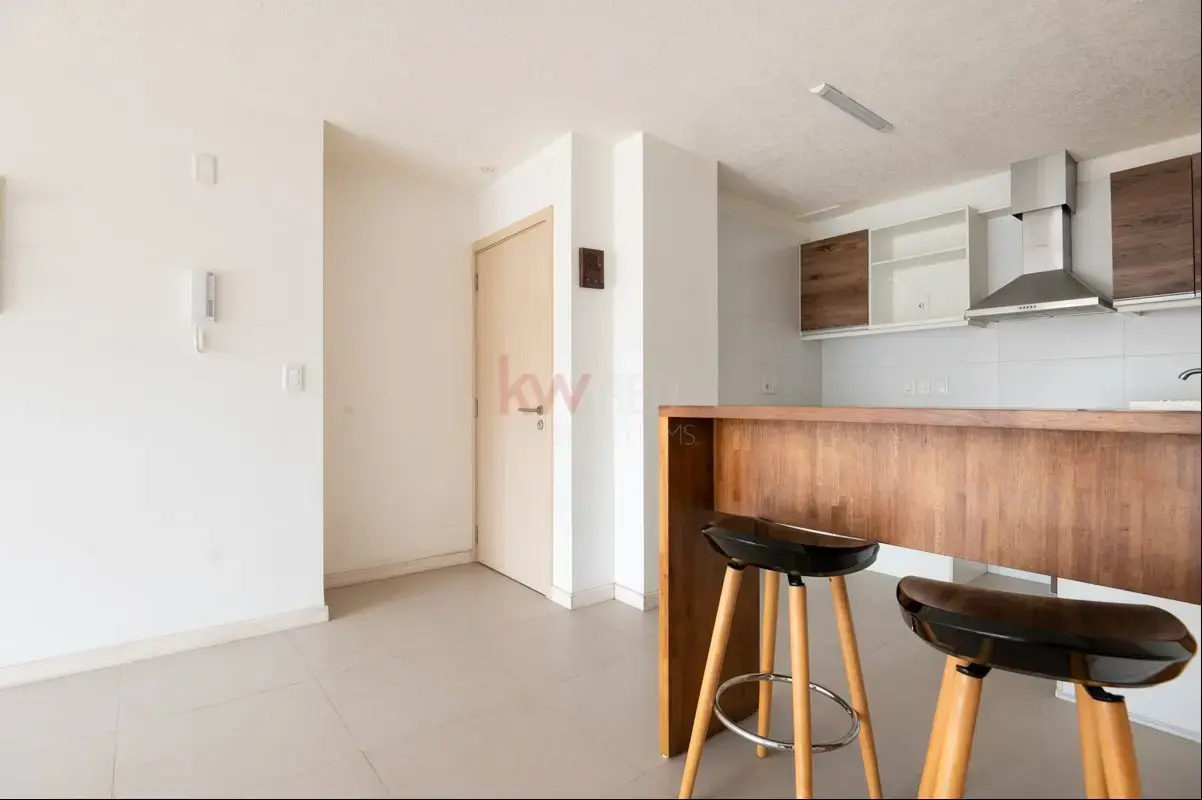 Cuenta con 2 dormitorios, 1 baño completo, y living-comedor, con cocina integrada equipada con campana muebles.