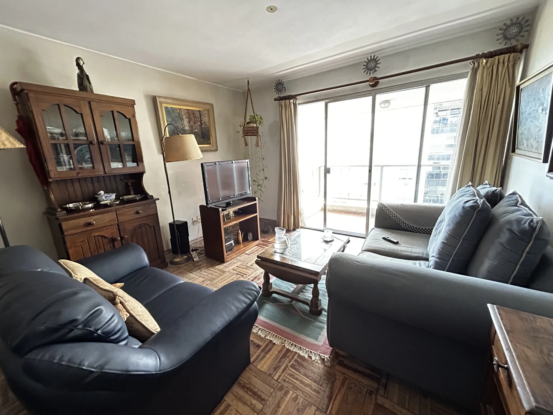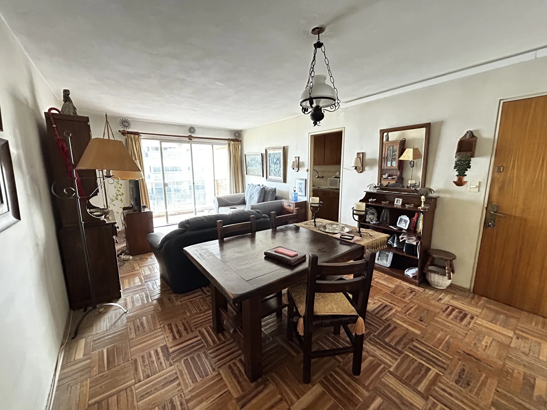 Living comedor amplio, al frente con salida a terraza grande con vista a la rambla. Todo con pisos de parquet.