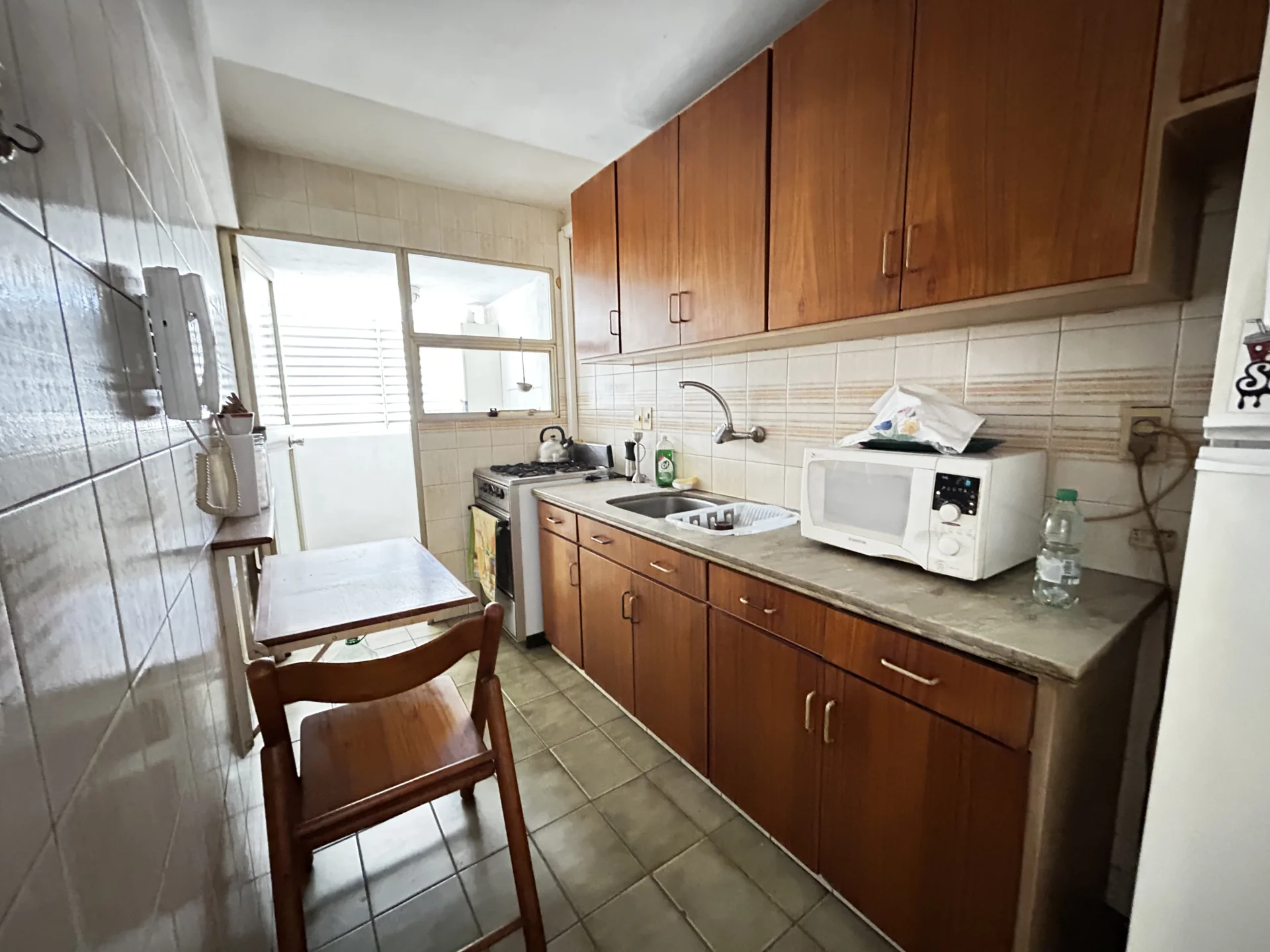 El apartamento esta de época, funcionando. Requiere arreglos.