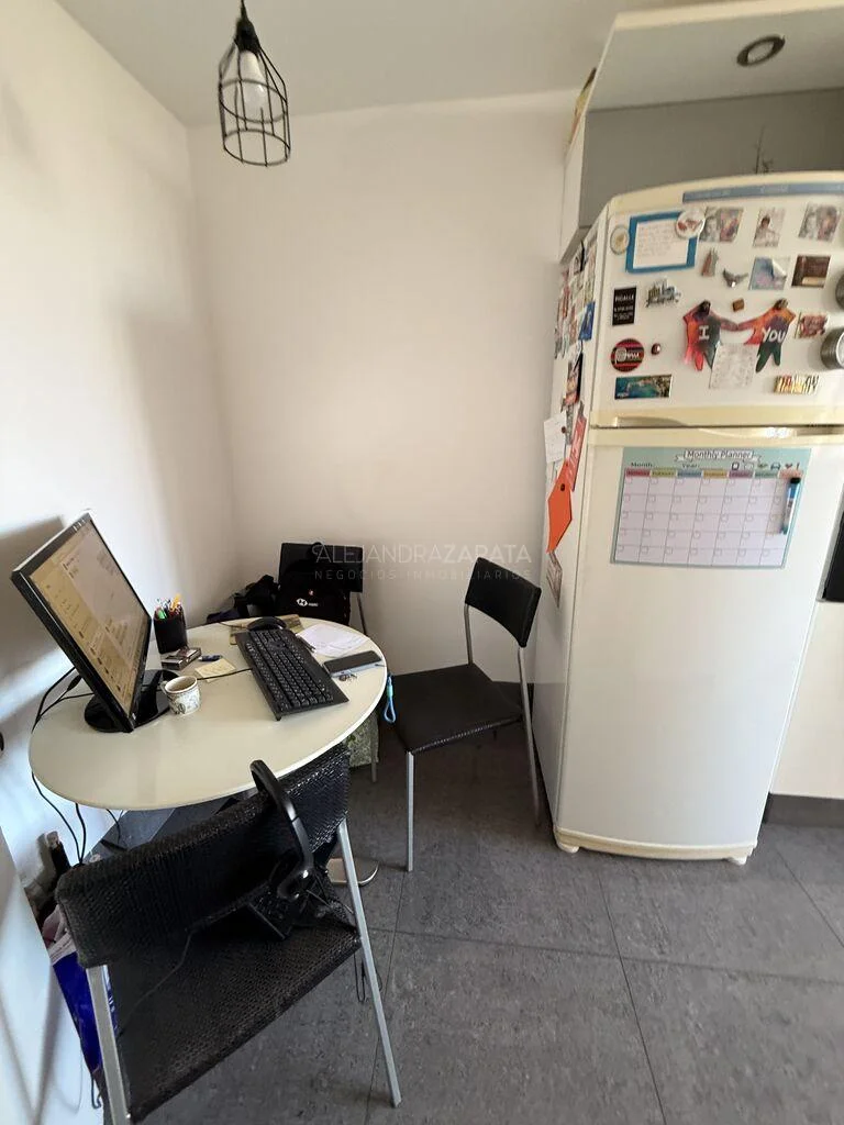 Amplia cocina con office con excelente profusión de placares sobre y bajo mesada.