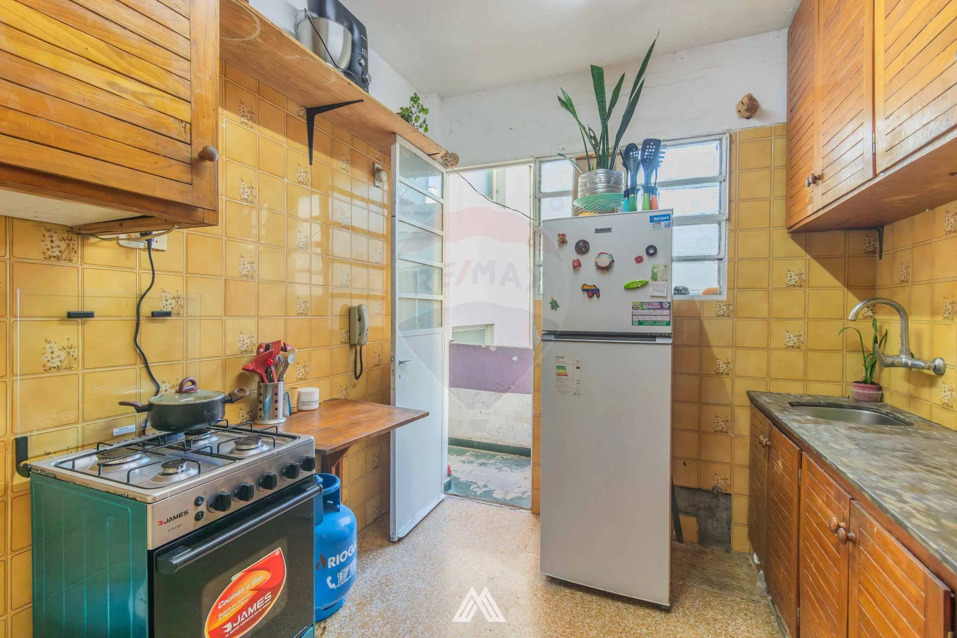 Cocina definida, con salida a terraza lavadero, de buen tamaño, que da a pozo de aire, con conexión para lavarropas.