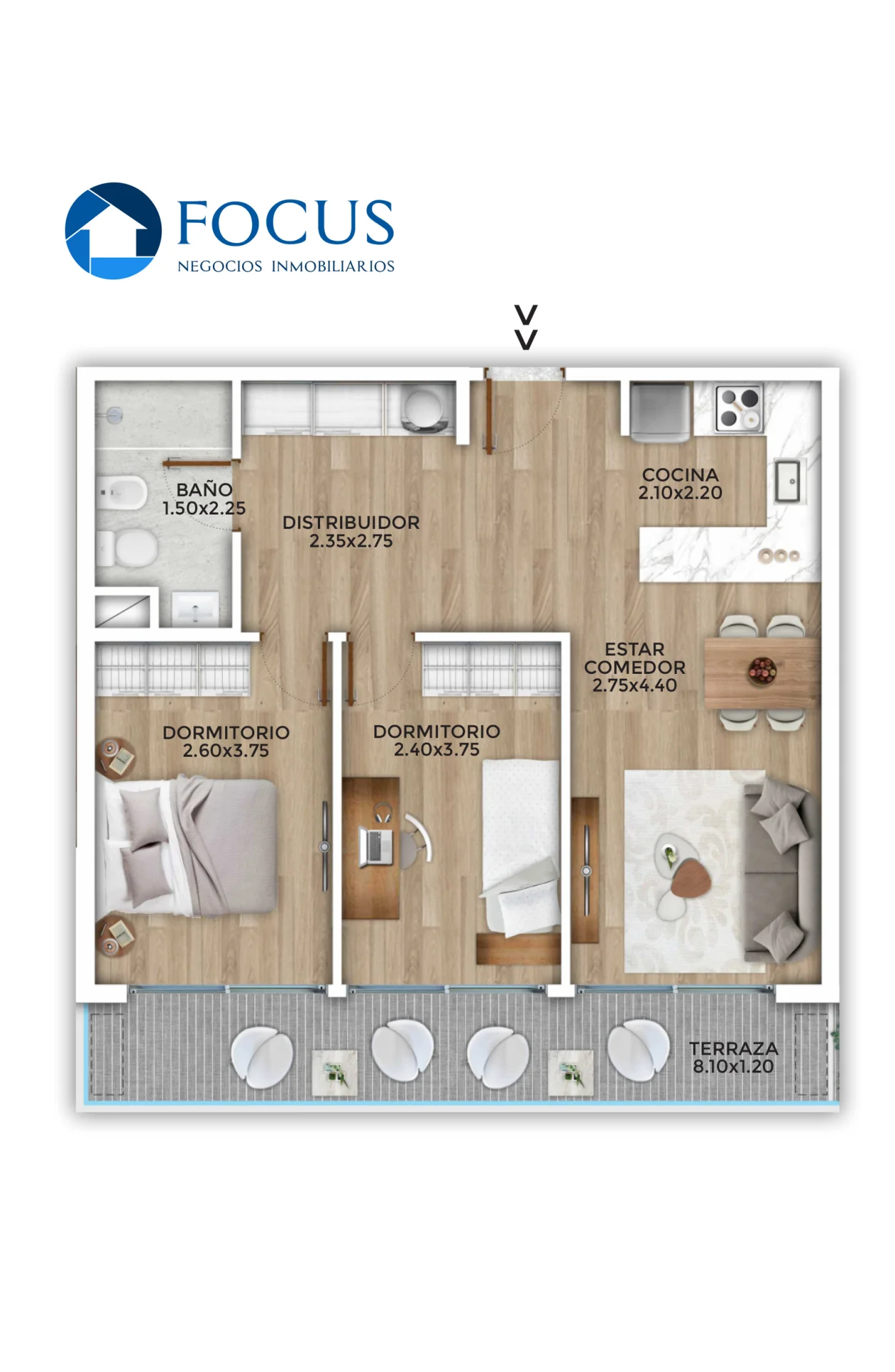 Living Comedor con salida a Terraza corrida de 9,8 m2.