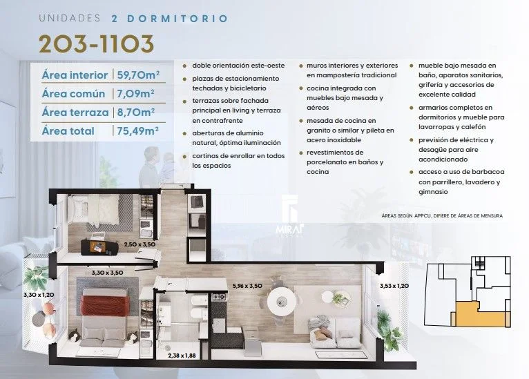 Precio promocional por pago contado. Consulte por pago financiado durante obra y otras unidades de 1 y 2 dormitorios.