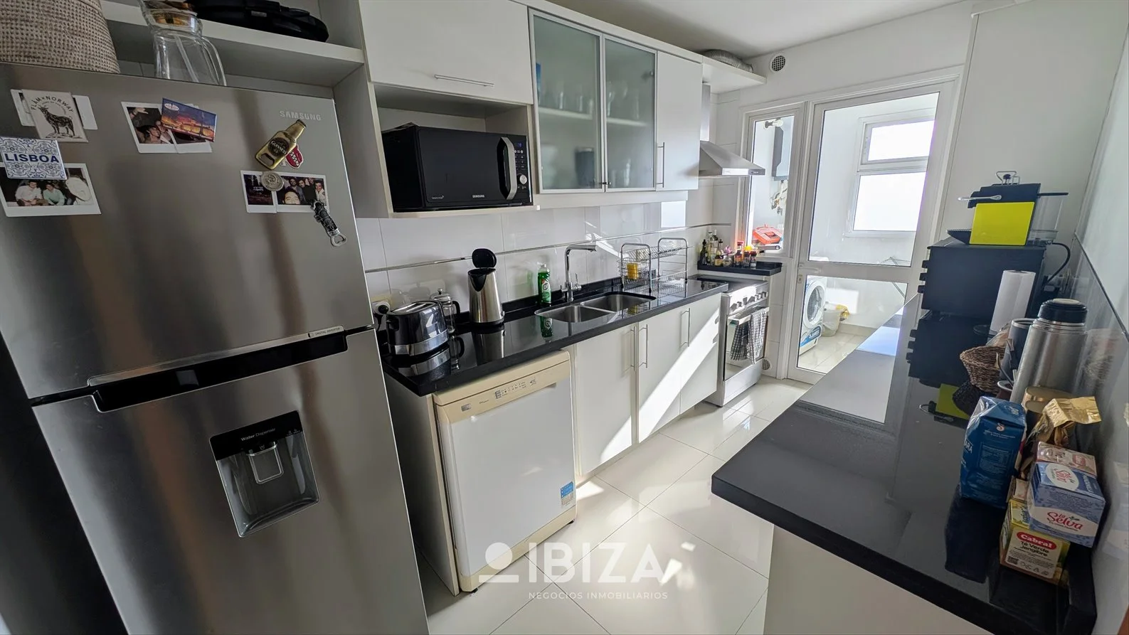 - Cocina definida de gran tamaño con doble mesada, placares aéreos y bajo mesada, y salida a una terraza lavadero.