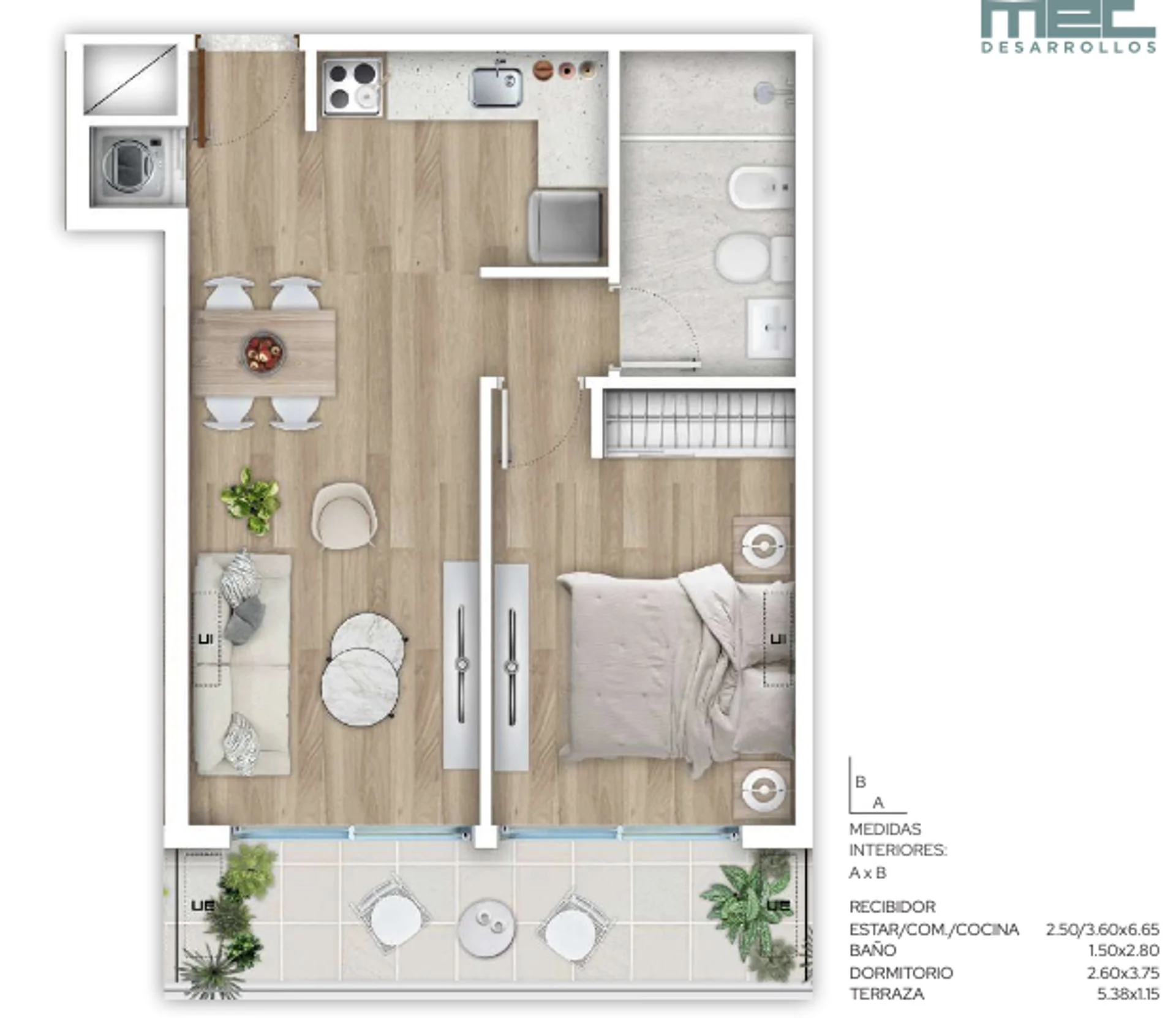 Unidad 111//Se ofrece un moderno apartamento de un dormitorios al frente con terraza, en construcción, ubicado en un edificio de calidad en pleno centro de Montevideo. Ideal para inversión o vivienda, combina diseño, funcionalidad y una ubicación estratégica, MET City esta a mitad de camino entre 18 de julio y la rambla. Una zona hiperconectada, llena de energía en movimiento.