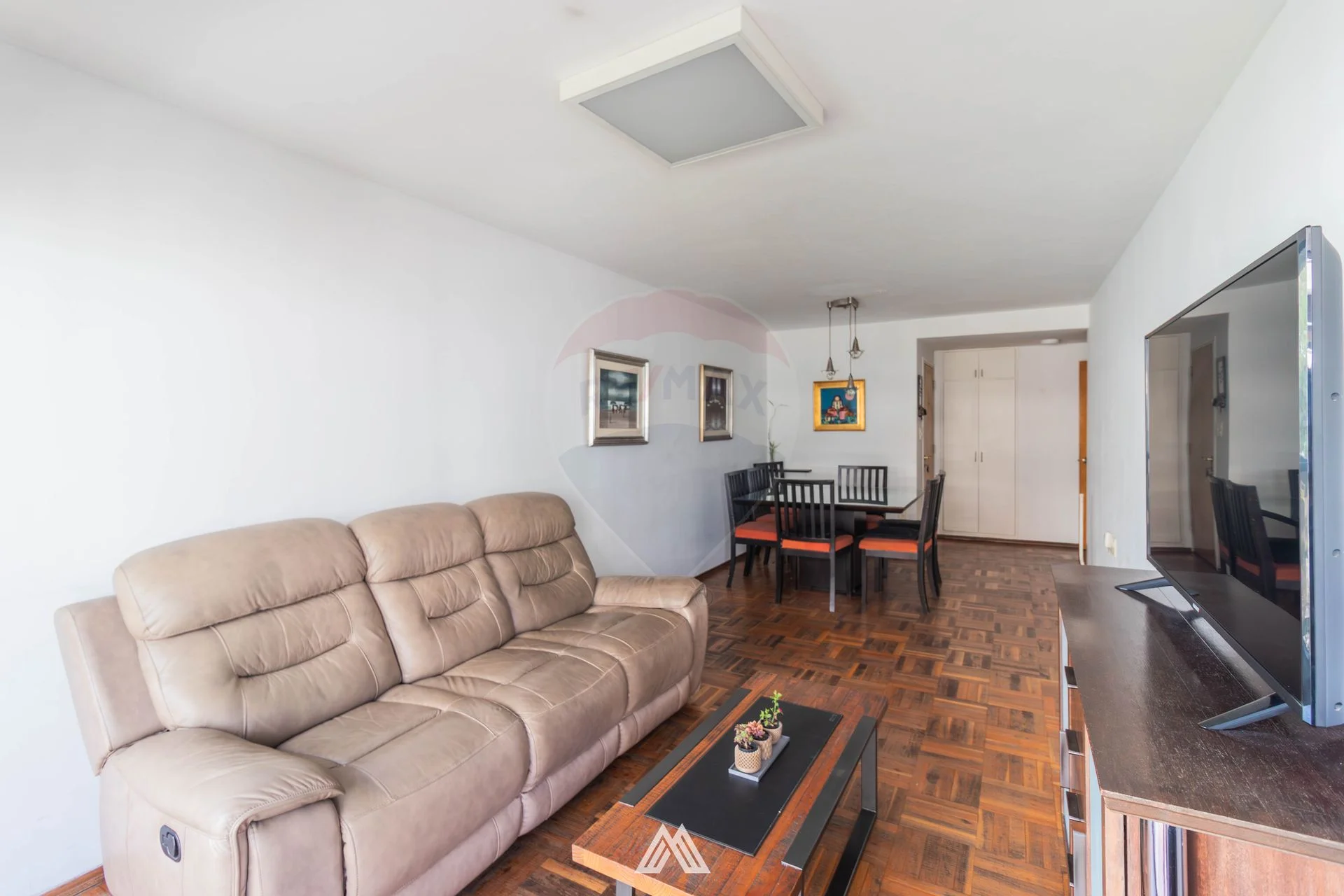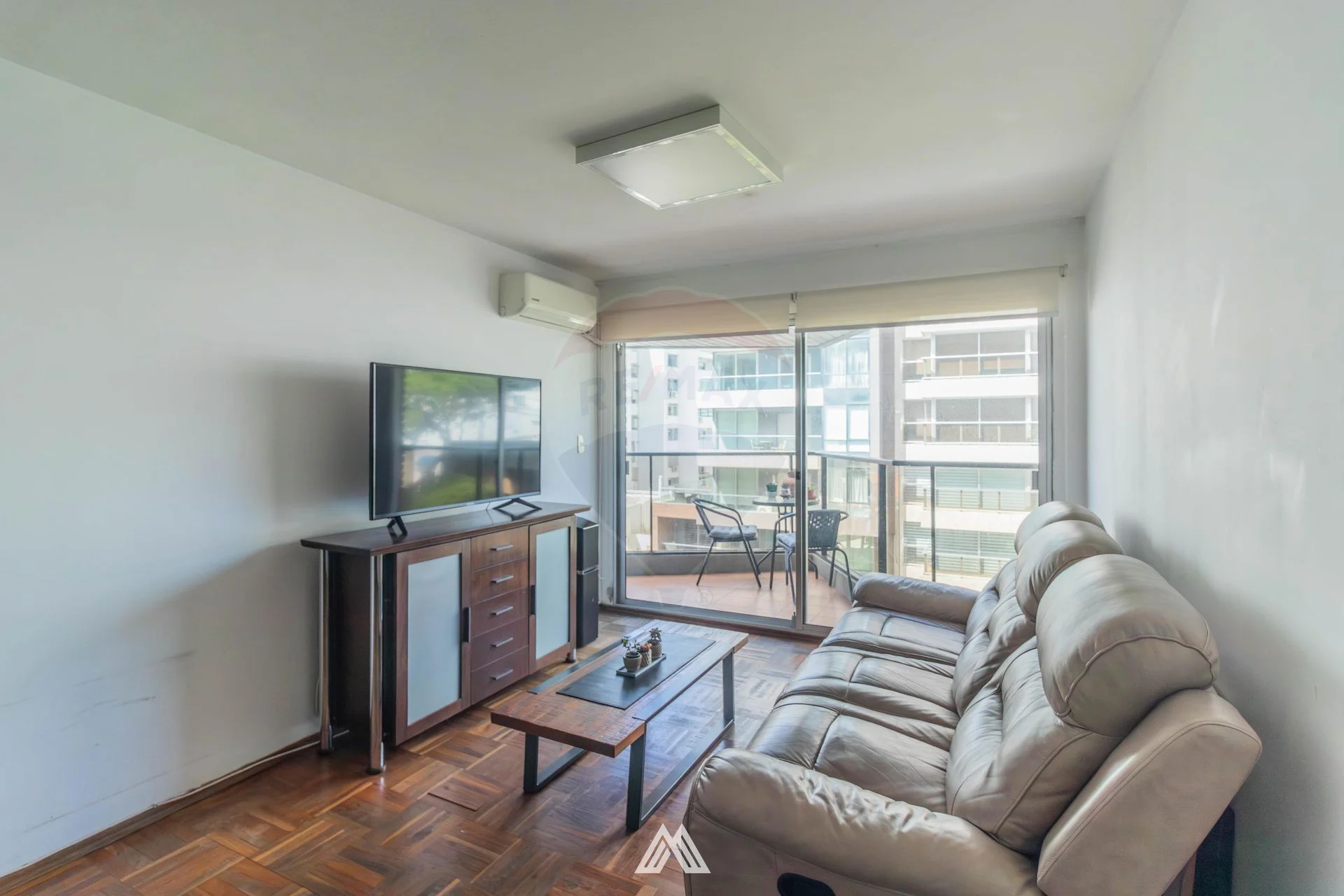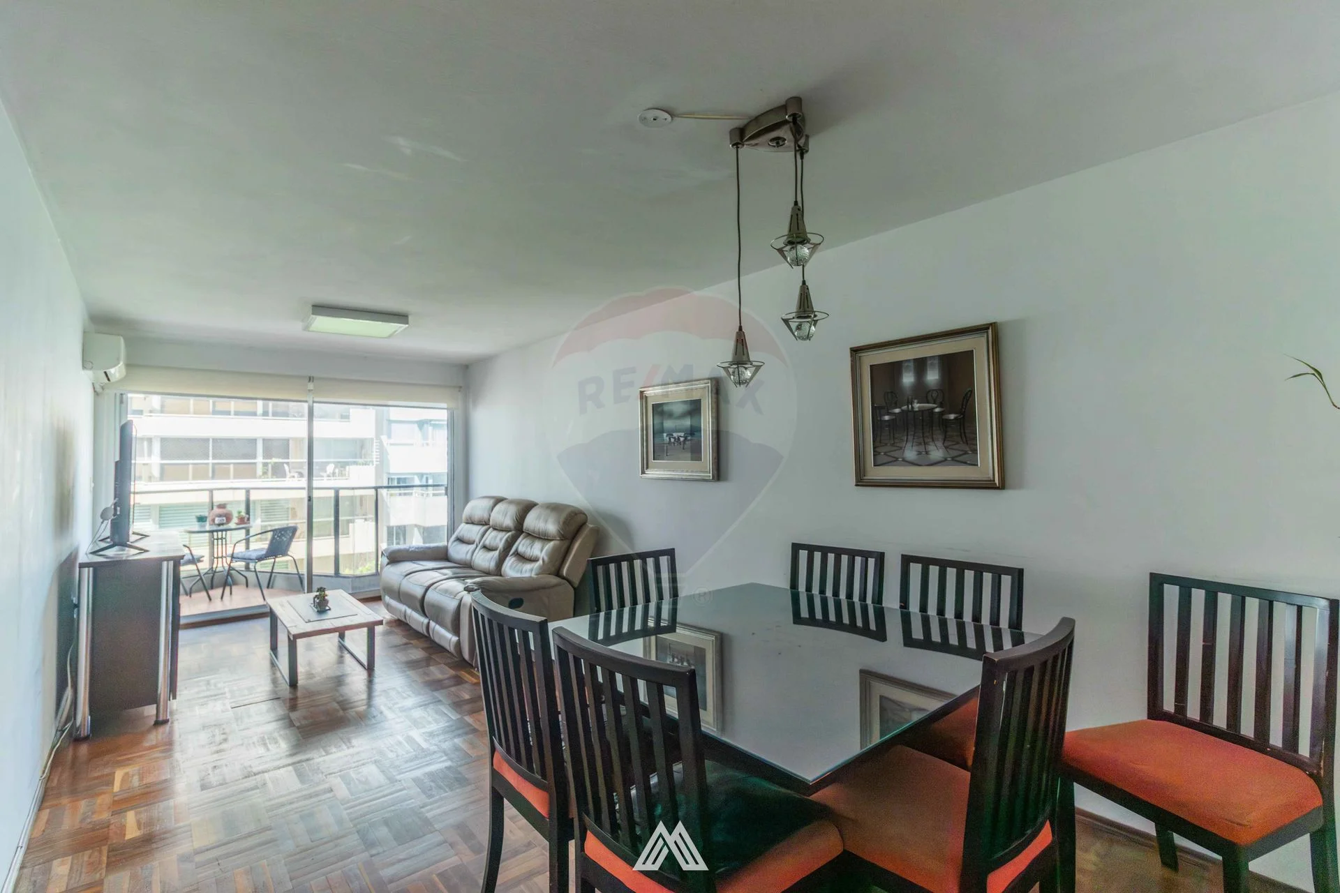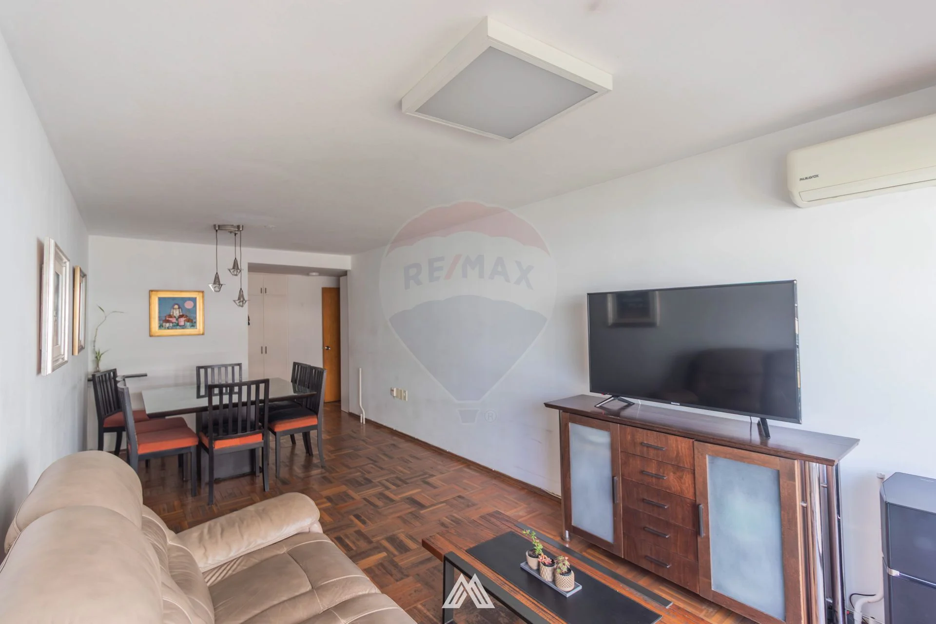 Living comedor con pisos de parqué, con salida a balcón, muy luminoso.