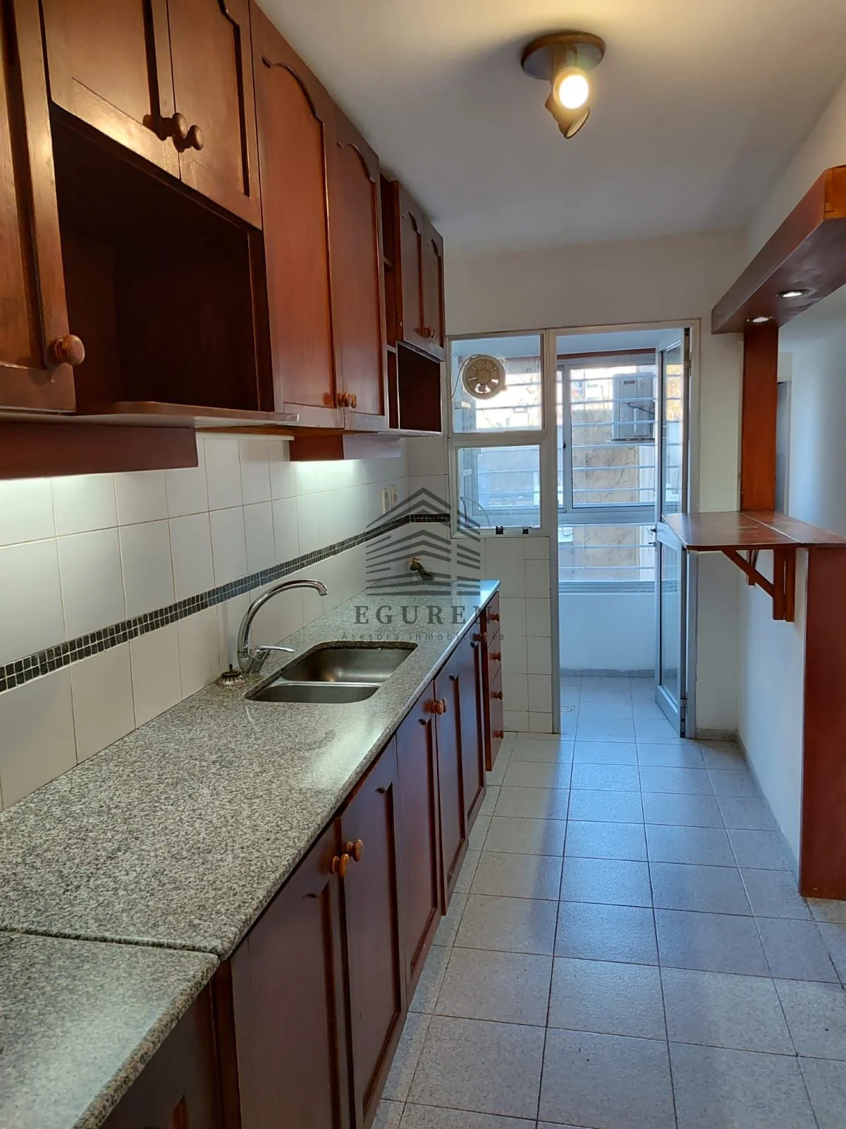 Se encuentra en un segundo piso con ascensor. El ingreso es a través de un amplio living-comedor con pisos de cerámica. La cocina definida cuenta con doble acceso, tanto desde el living como desde el pasillo, y dispone de muebles aéreos y bajo mesada, además de salida a una terraza lavadero.