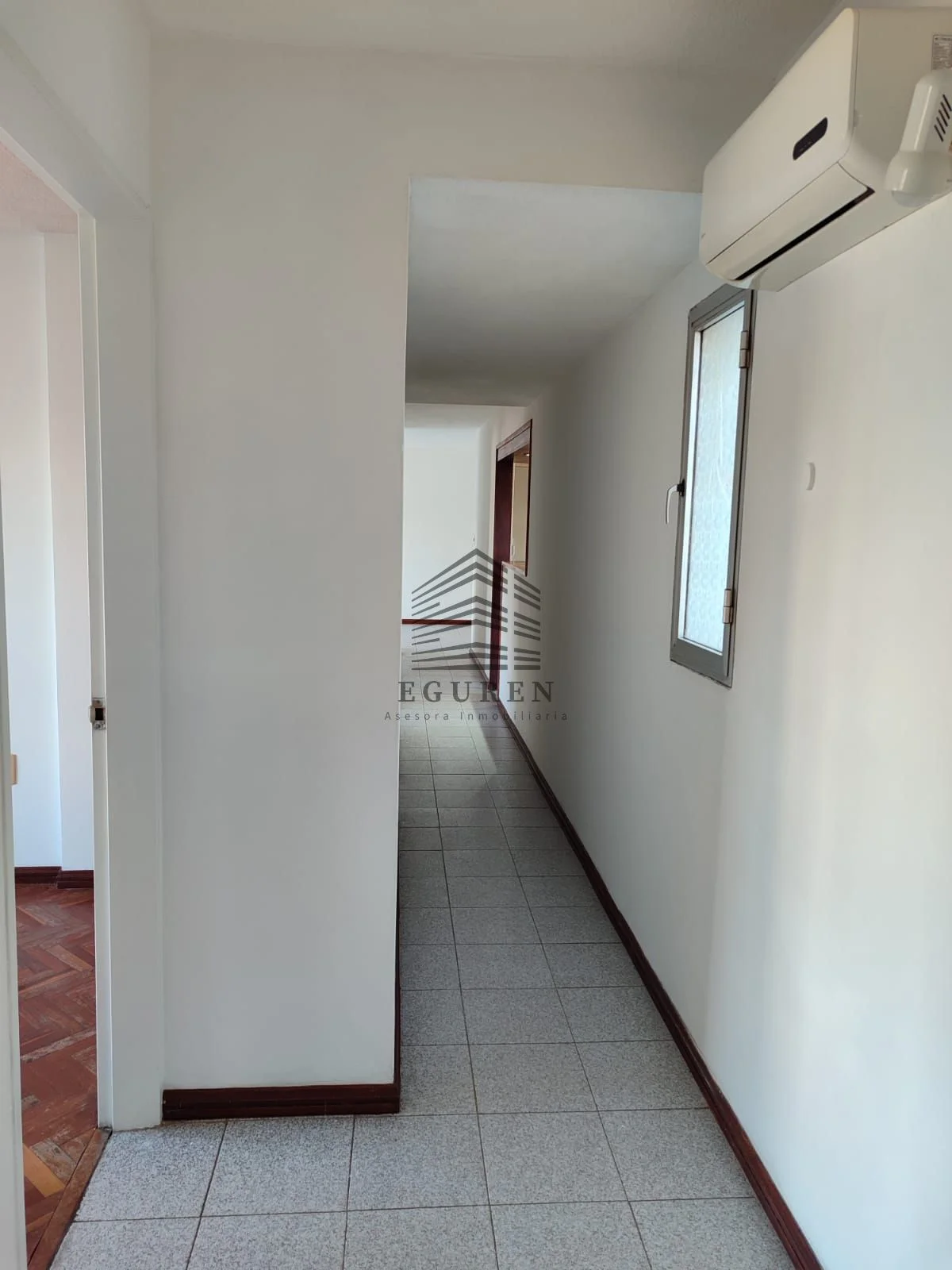 El apartamento tiene cuatro dormitorios con pisos de parquet, tres de ellos con placares empotrados. Posee dos baños, uno completo y otro social.