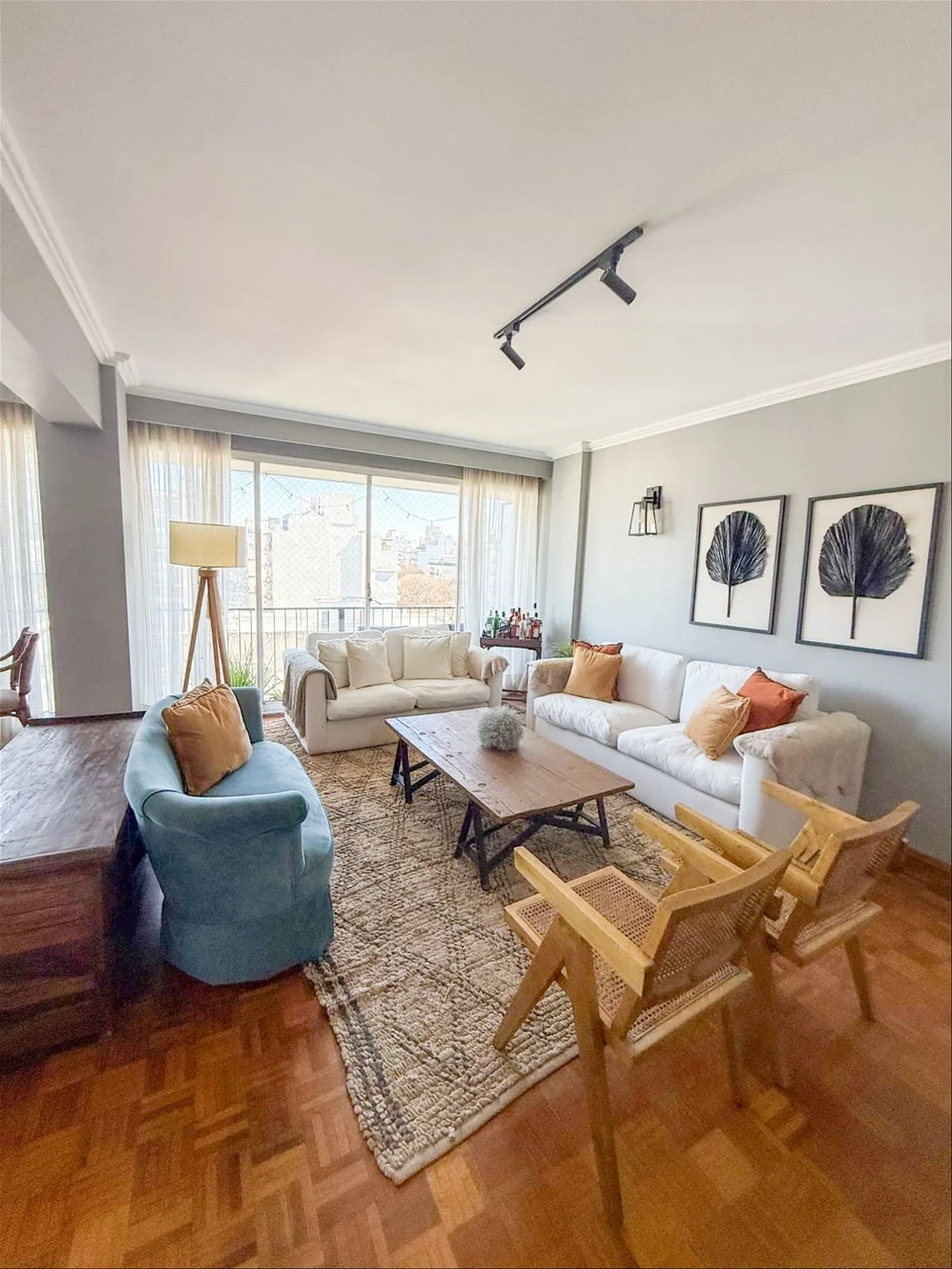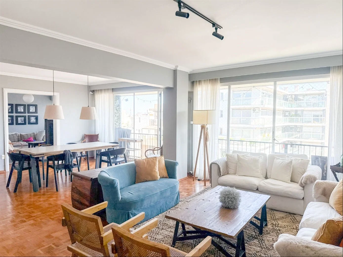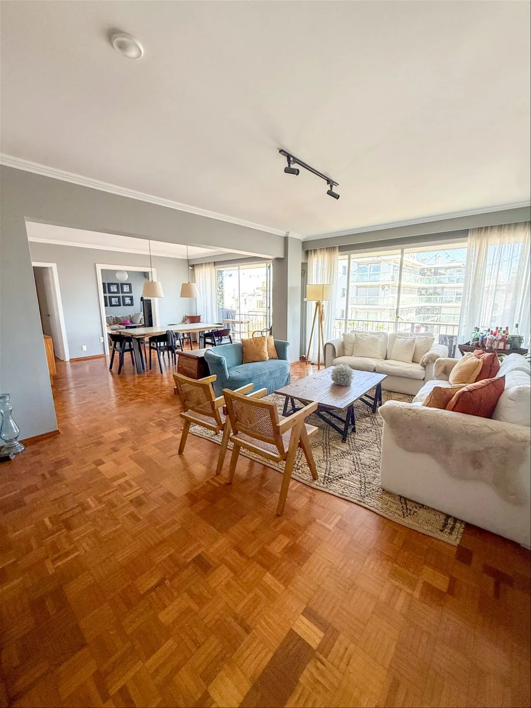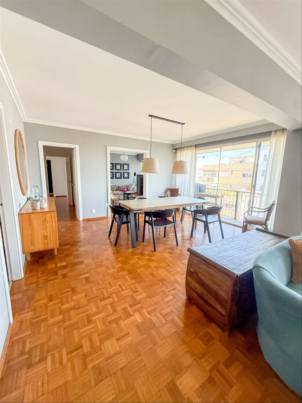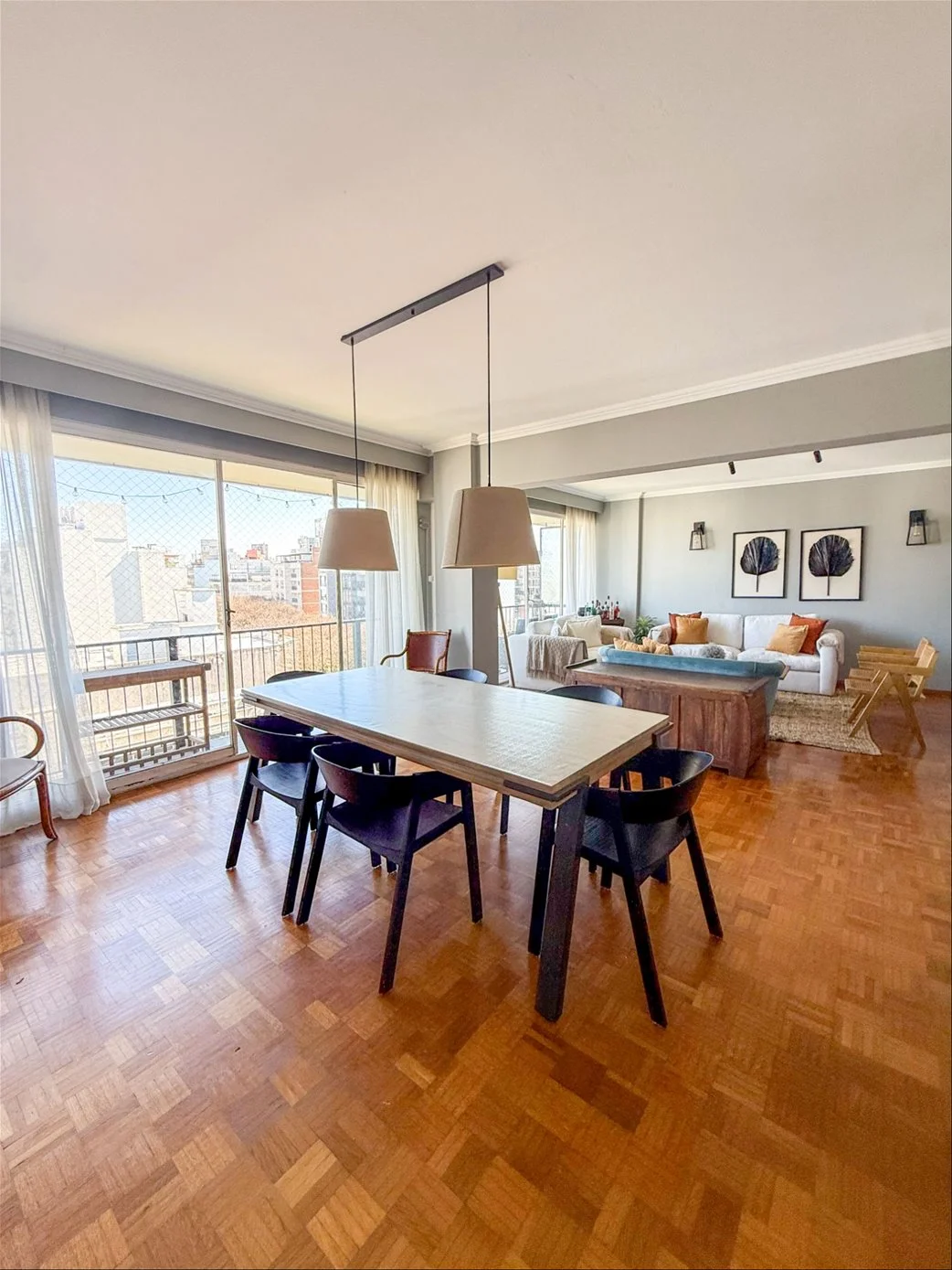 Amplio living comedor apaisado con gran balcón al frente
