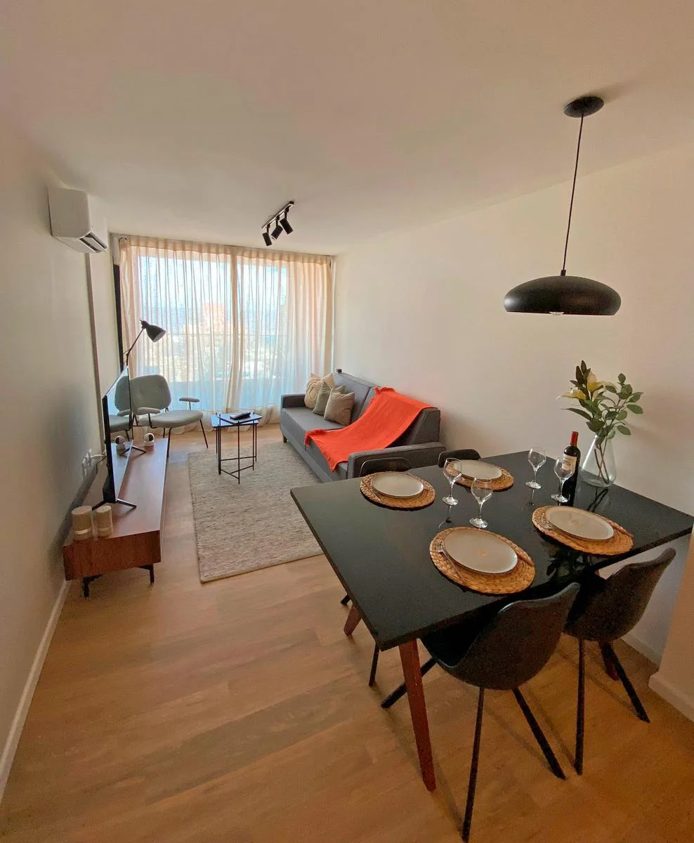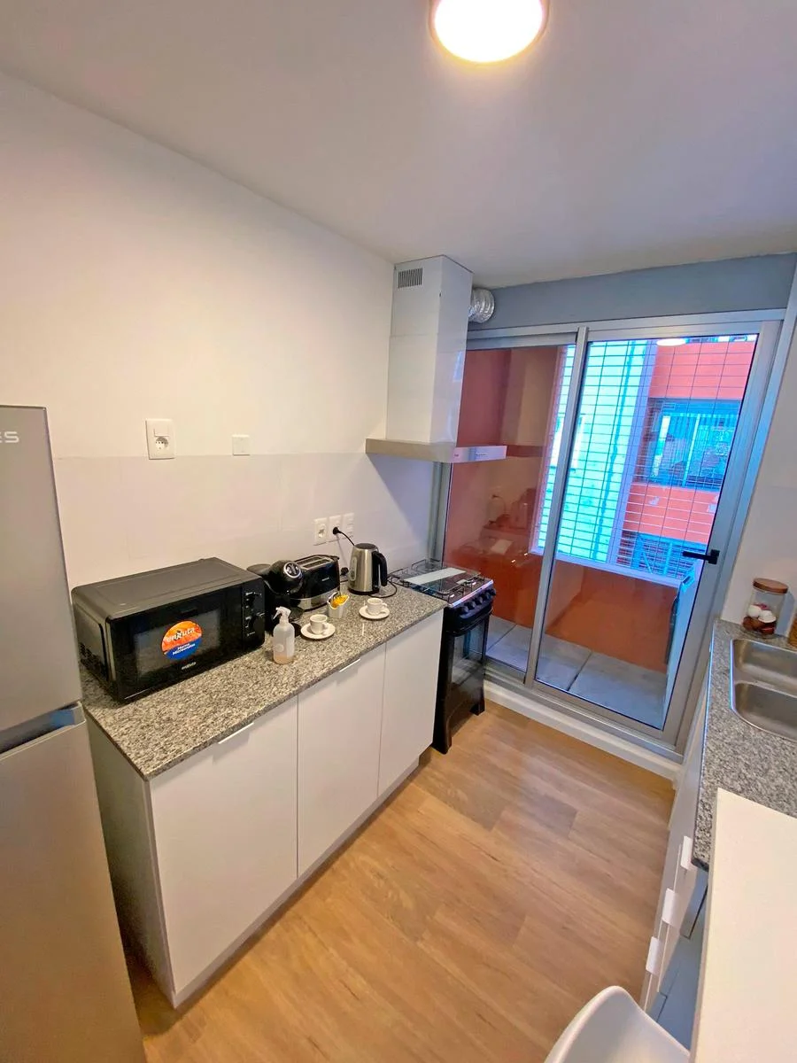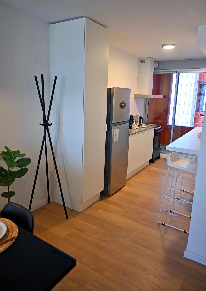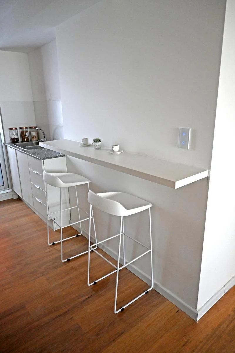 - Amplio living comedor con cocina integrada con bajo mesada y barra divisoria