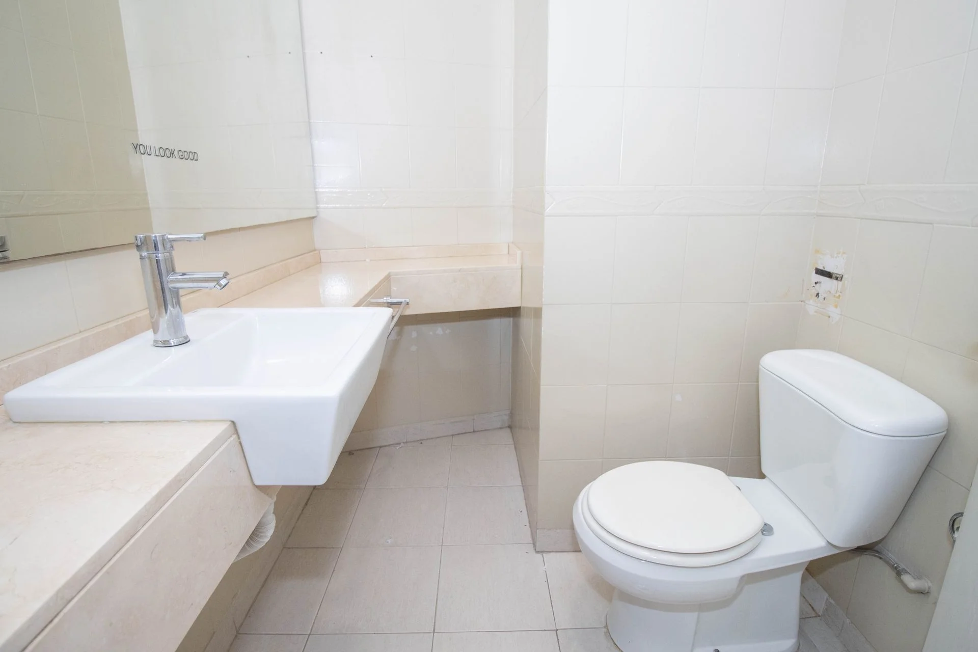 Al ingresar se accede a un hall de recepción. A la derecha se ubica una habitación con placares empotrados y, a la izquierda, un gran ambiente con moquete y parquet, muy luminoso gracias a sus ventanales. El primer baño está actualizado y en excelente estado.