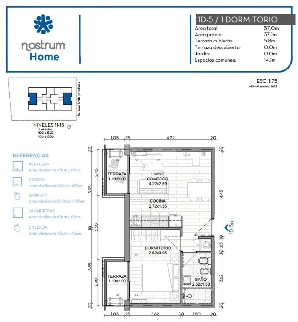 Se proyecta en 15 niveles, con 148 unidades de apartamentos, 128 de 1 dormitorio y 20 de 2 dormitorios.